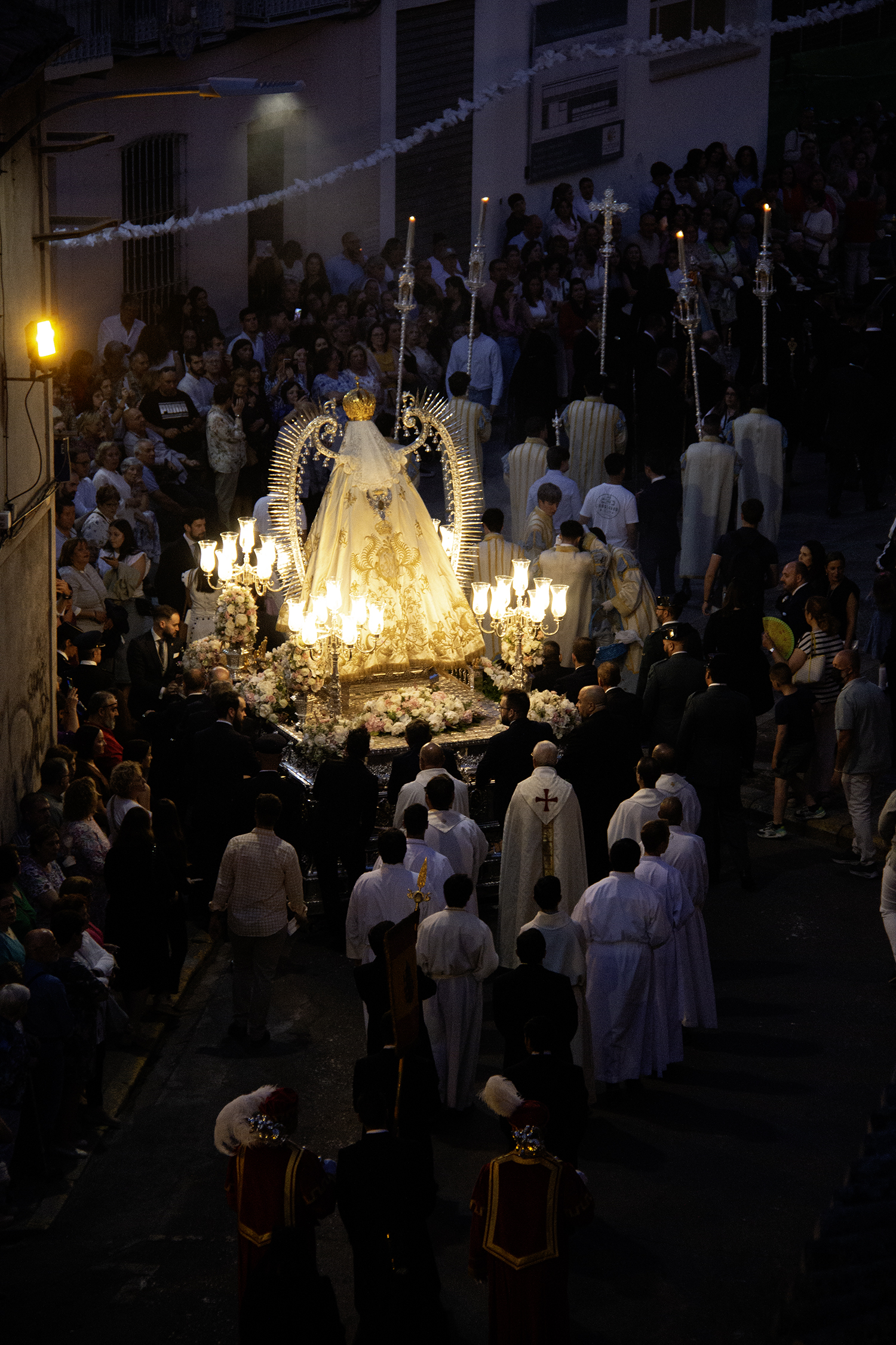 Detrás de la imagen de la Virgen, la acompañaban sacerdotes de Ciudad Real y canónigos. Además, en el cortejo participaron autoridades, hermandades y cientos de fieles que, vela en mano, acompañaron a su patrona.