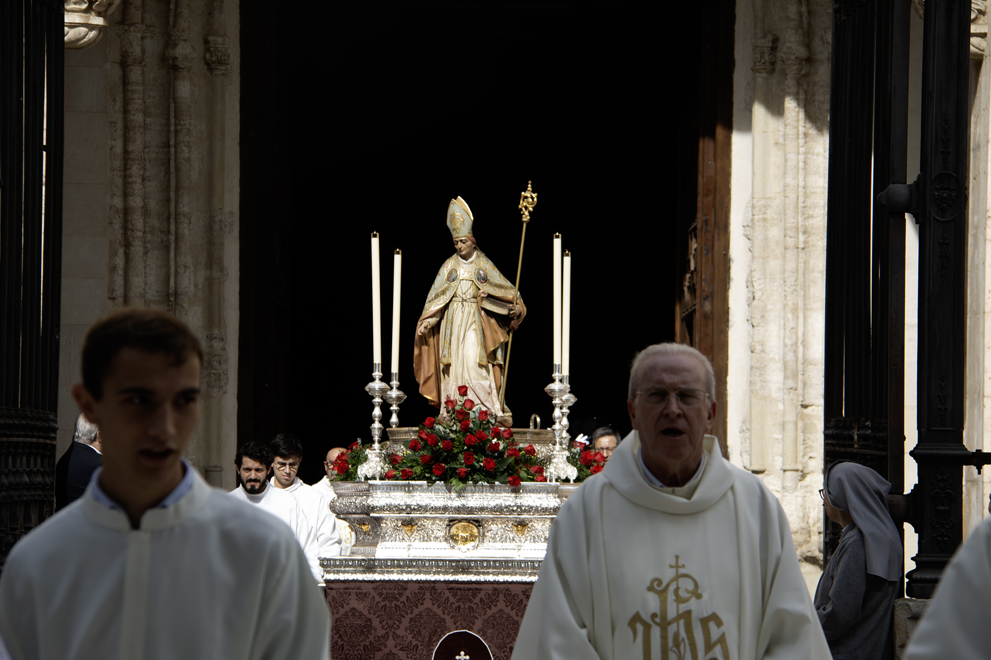 Antes del inicio de la misa, toda la comunidad salió en procesión por los jardines del Prado, en torno a la catedral, acompañando a la imagen de santo Tomás, que portaban varios seminaristas. Tras dar una vuelta al templo, la procesión regresó al interior para continuar con la celebración eucarística.