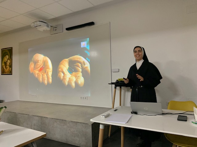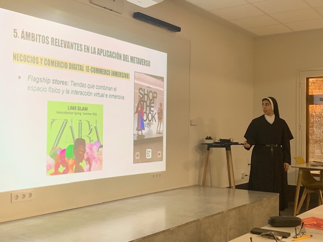 Después de la oración, Sor Cristina Cipriano Díaz, religiosa de la comunidad de Agustinas, impartió la ponencia Del universo al metaverso: redefiniendo la frontera de la realidad.