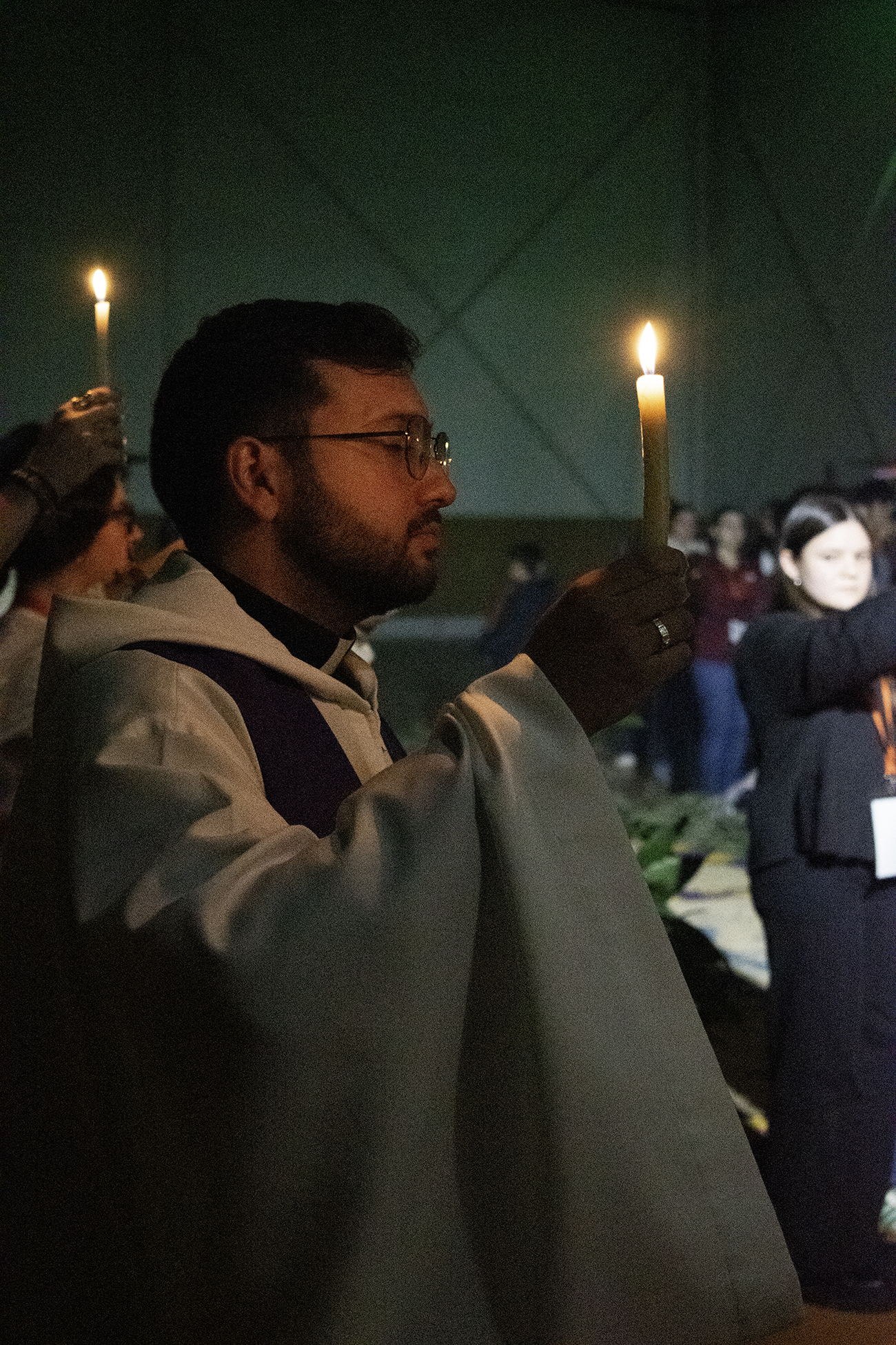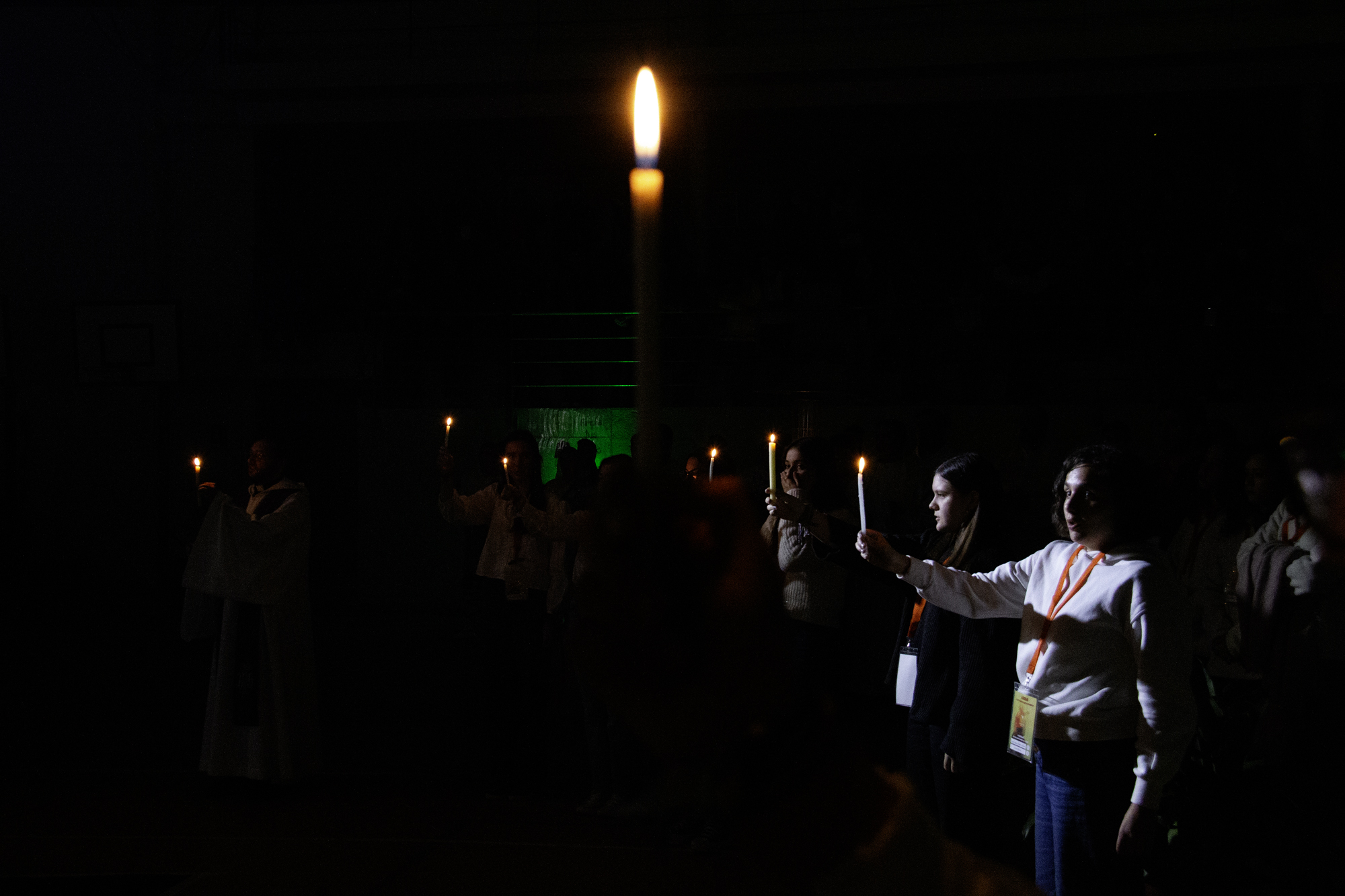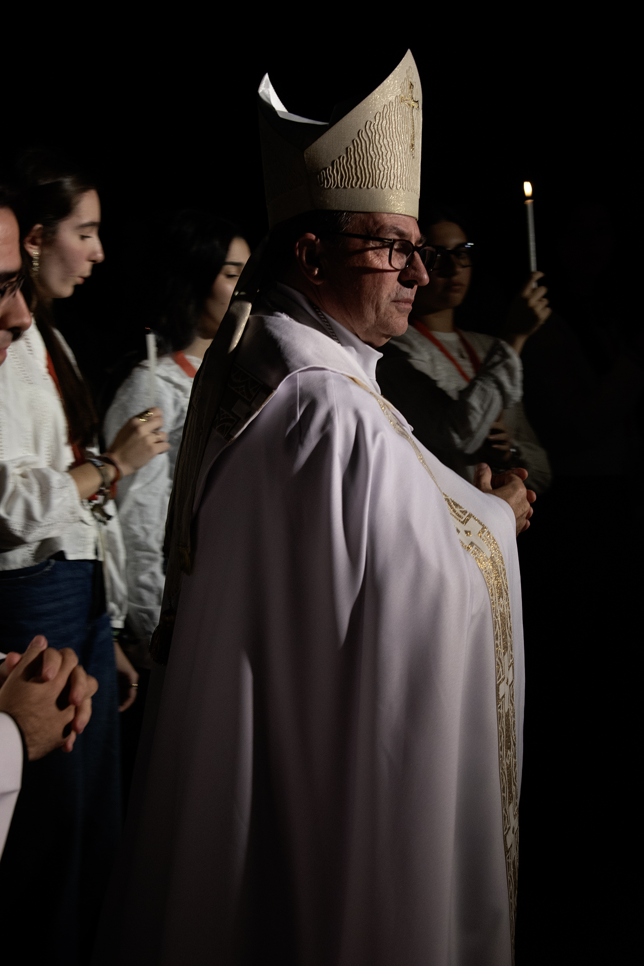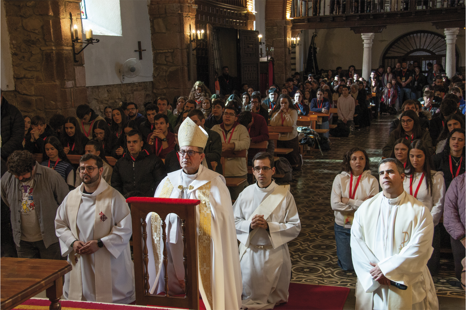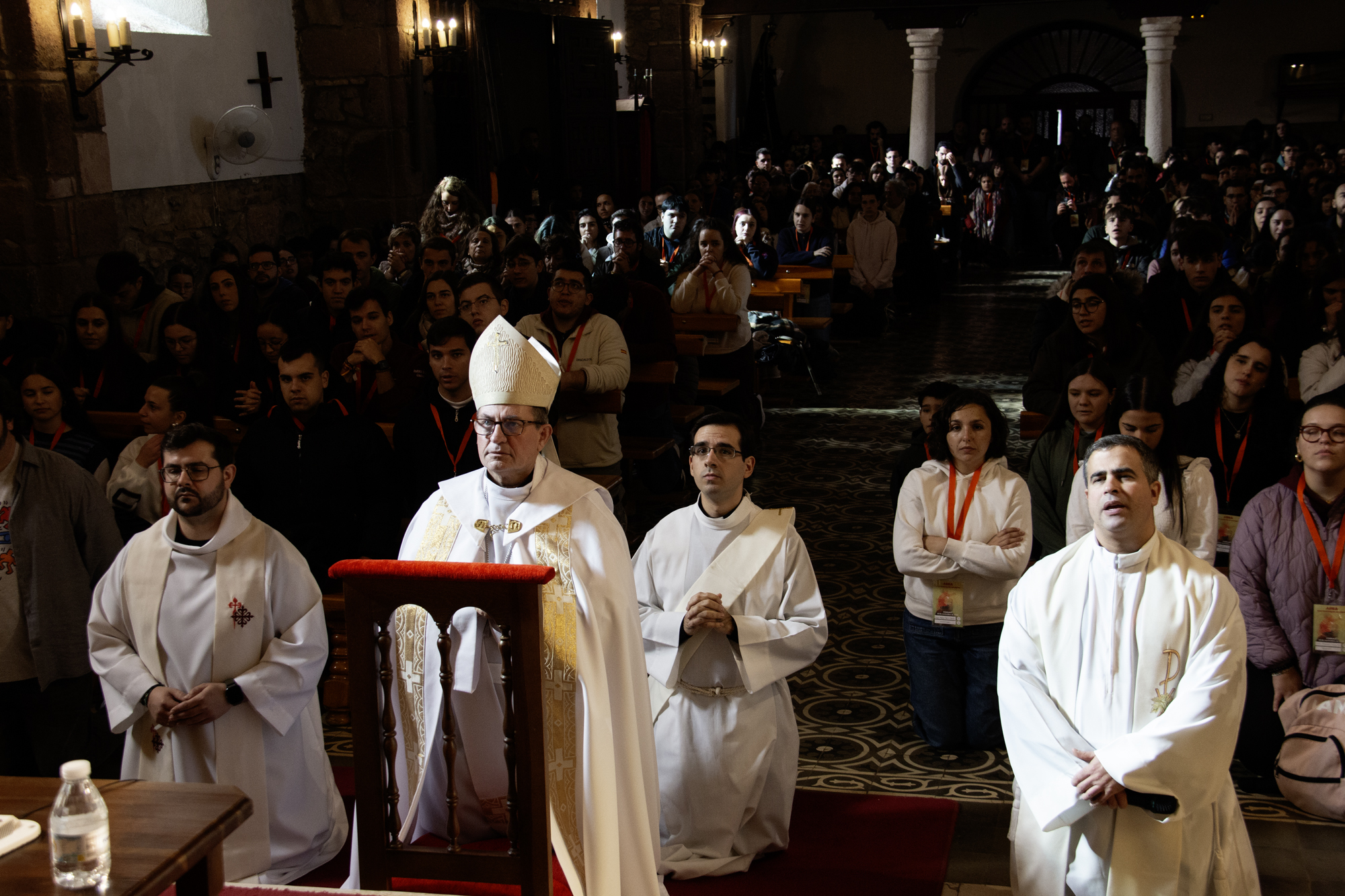 Tras la lectura de la Palabra, el obispo se dirigió a los más de 400 jóvenes con una invocación al Espíritu Santo para que «renueve la cara de mi vida ante el espejo de la Palabra» y sea «mi guía y mi aliento, mi fuego y mi viento, mi fuerza y mi luz».