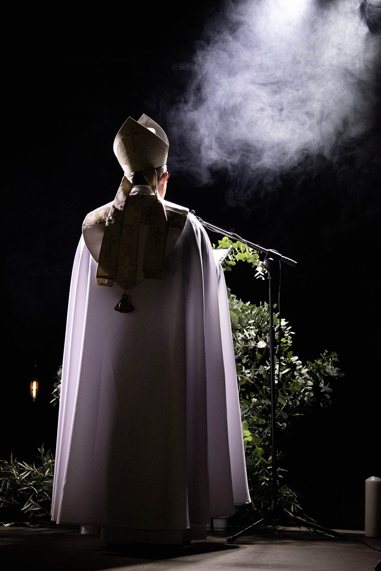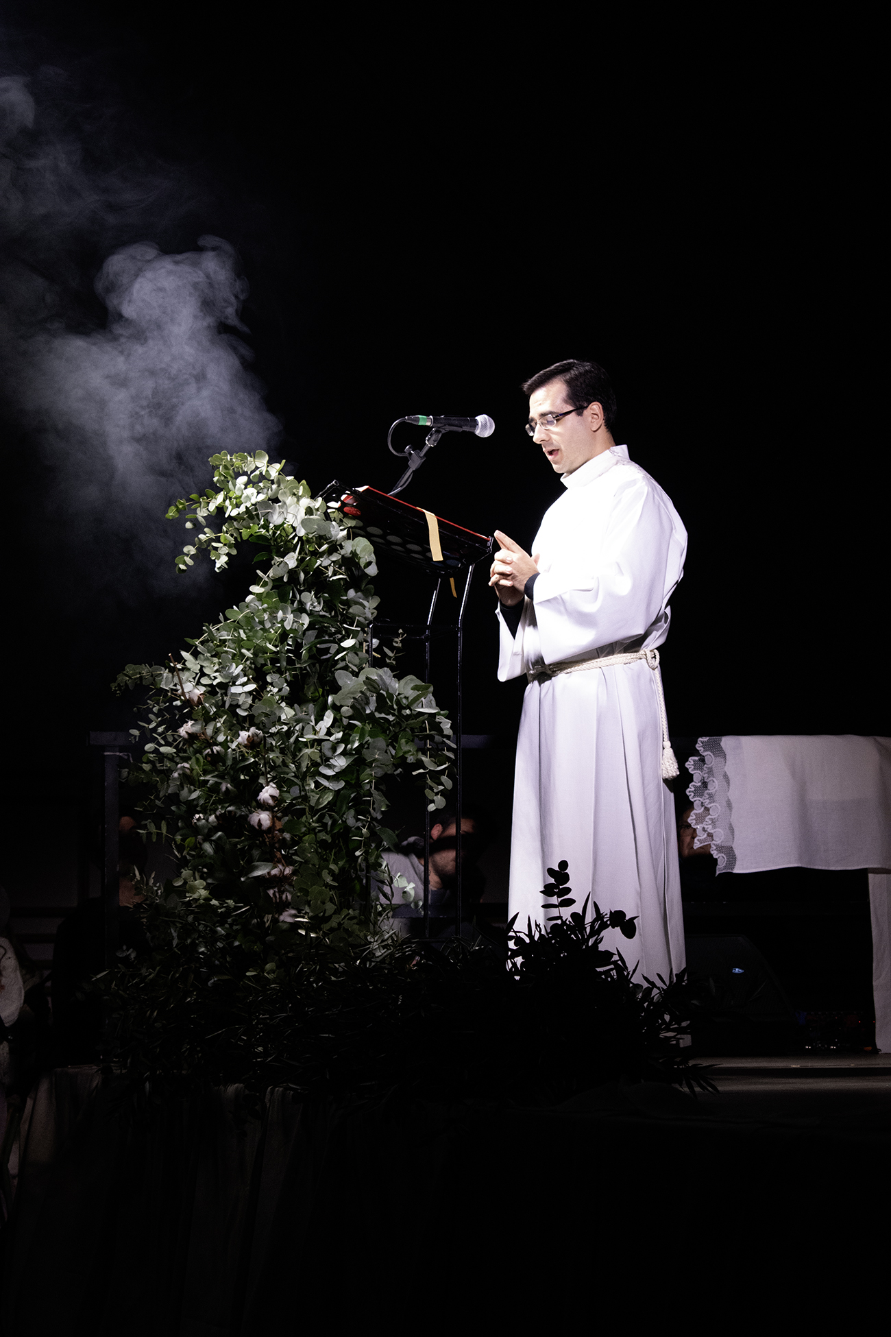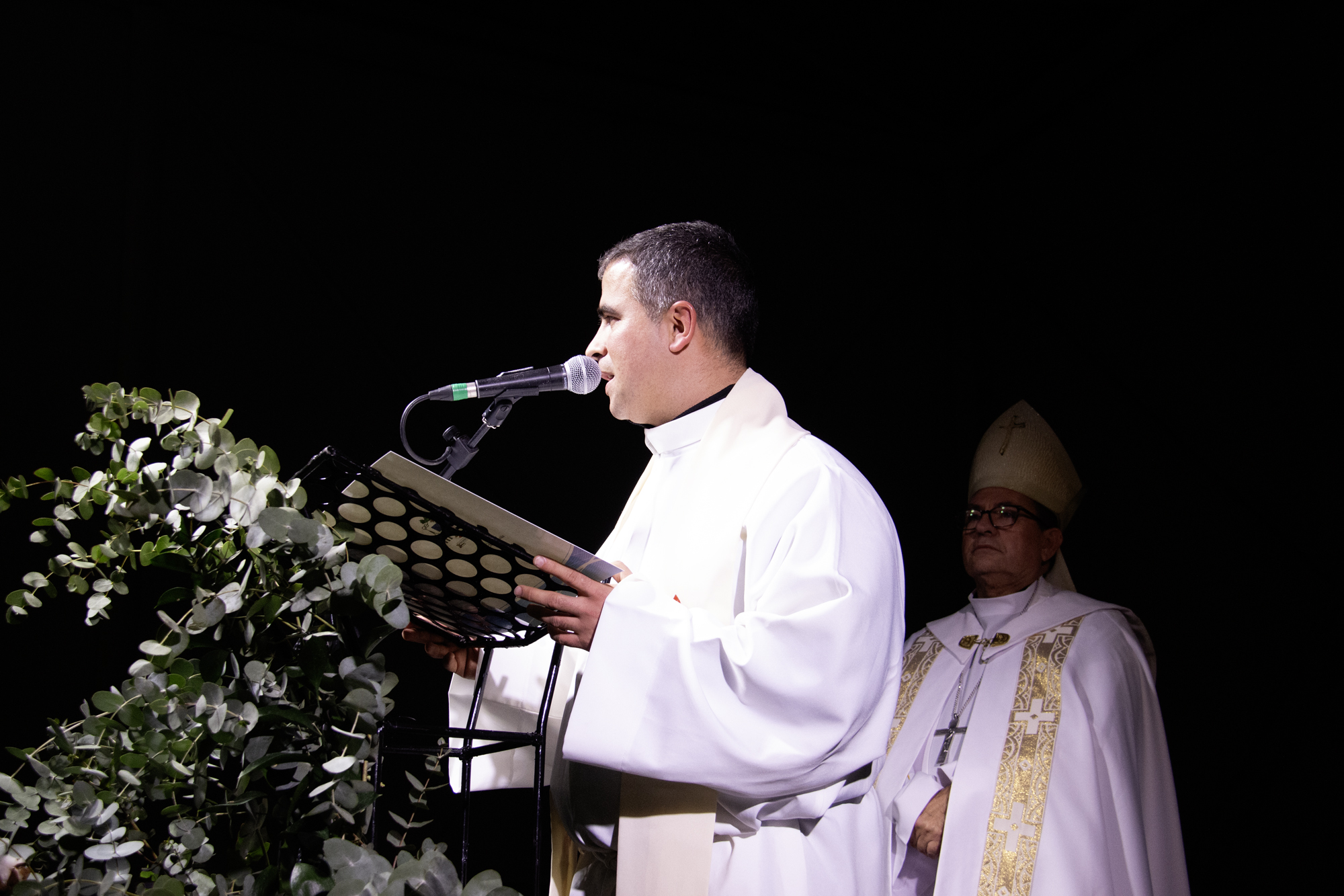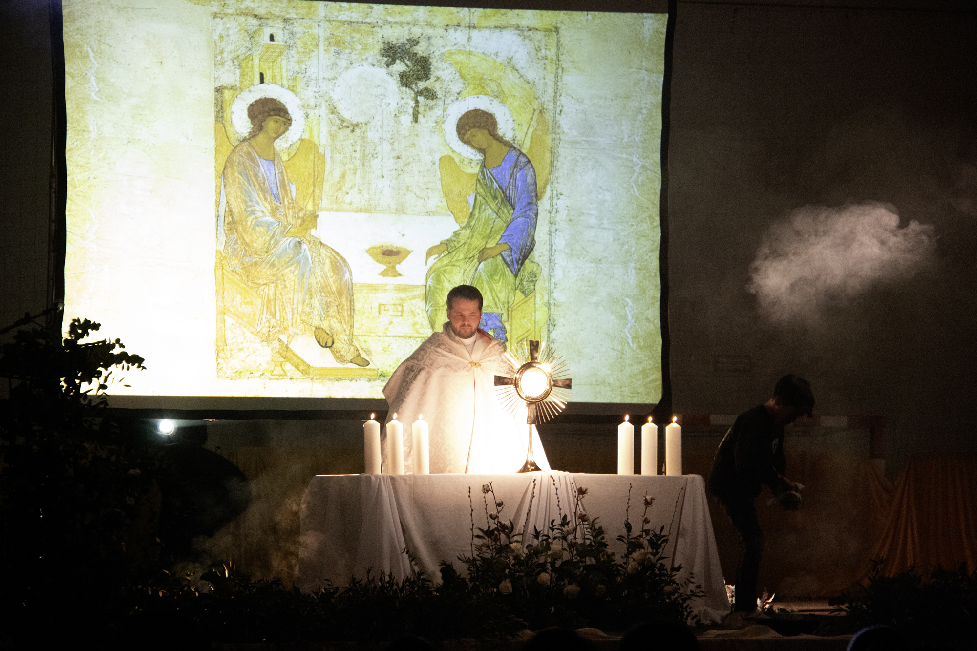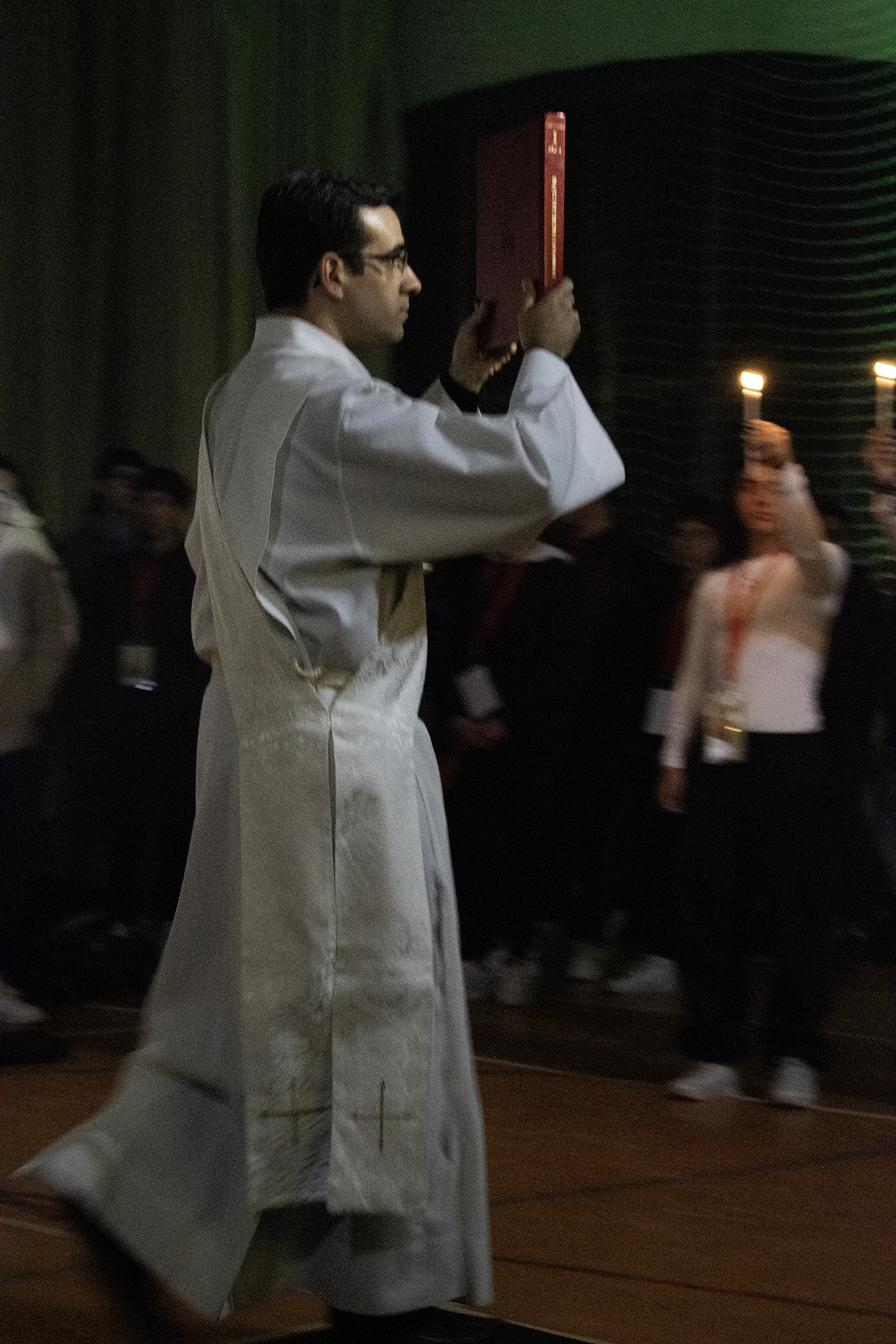 Tras la lectura de la Palabra, el obispo se dirigió a los más de 400 jóvenes con una invocación al Espíritu Santo para que «renueve la cara de mi vida ante el espejo de la Palabra» y sea «mi guía y mi aliento, mi fuego y mi viento, mi fuerza y mi luz».