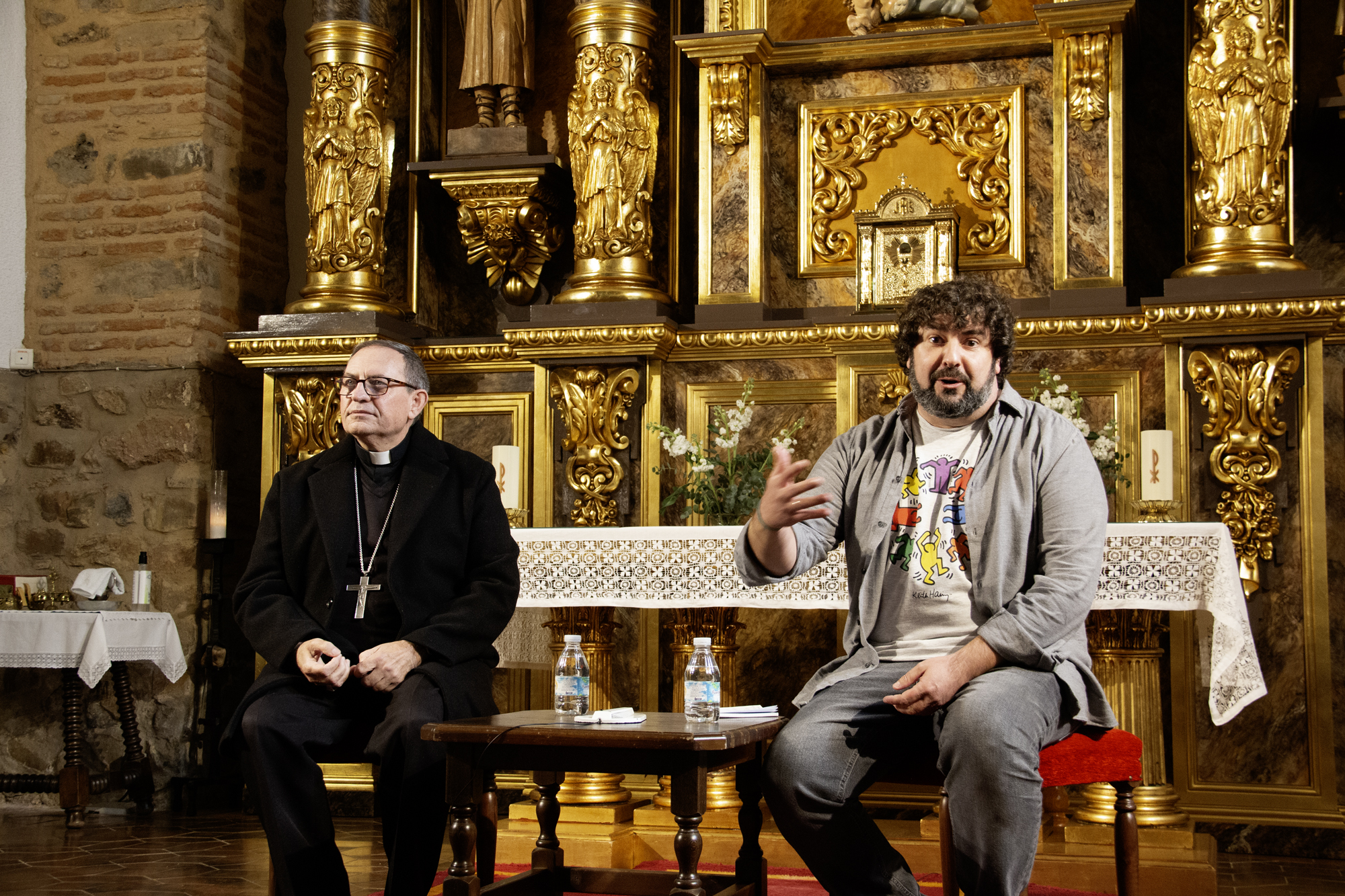 Tras rezar todos juntos ante el sagrario, comenzó la actividad «Tengo una pregunta para usted», en la que los jóvenes pudieron cuestionar al obispo sobre temas sociales, religiosos y humanos que les preocupan. Junto al obispo, respondía también las preguntas de los jóvenes Fran Ramírez, director de Juventud de la Conferencia Episcopal.