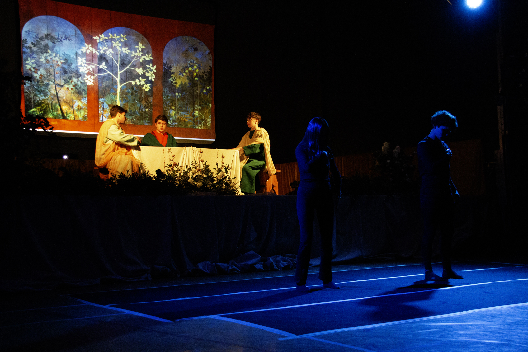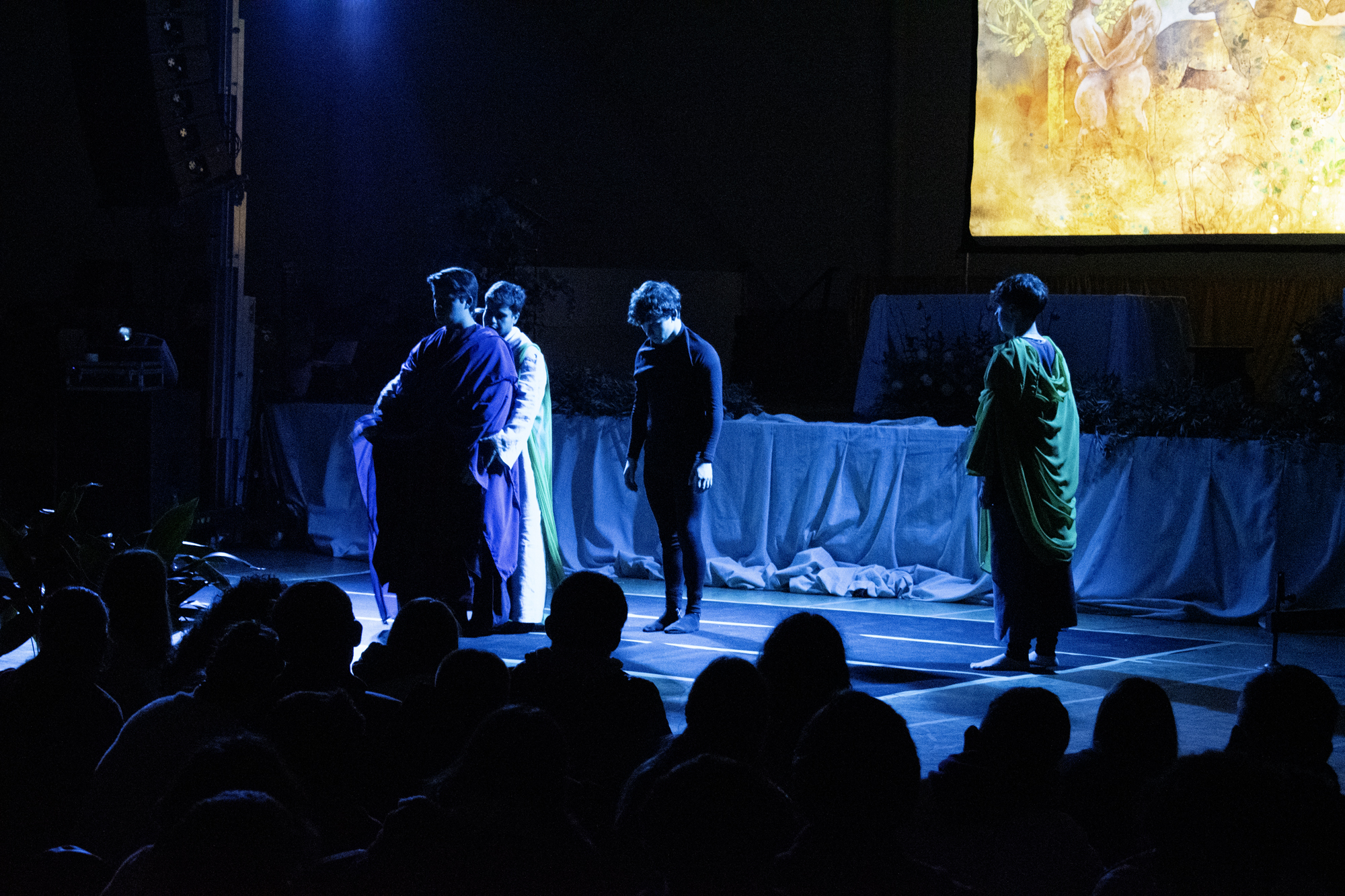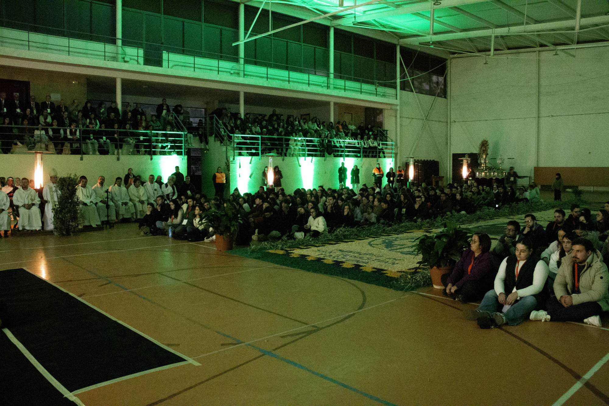 Tras la cena, que ofreció también la parroquia de Porzuna, el grupo se reunió en el pabellón deportivo, donde tuvo que celebrarse la vigilia a causa de la falta de espacio en el templo parroquial. Este momento de la Marcha es el más esperado por los jóvenes cada año. En esta ocasión, se compuso de cuatro momentos en los que se vio reflejada la imagen de Dios Padre a lo largo de la Historia de la salvación. Con una representación teatral y con la música de la Coral Diocesana, la vigilia introdujo a todos los jóvenes en unos momentos de oración y reflexión íntimos y comunitarios.