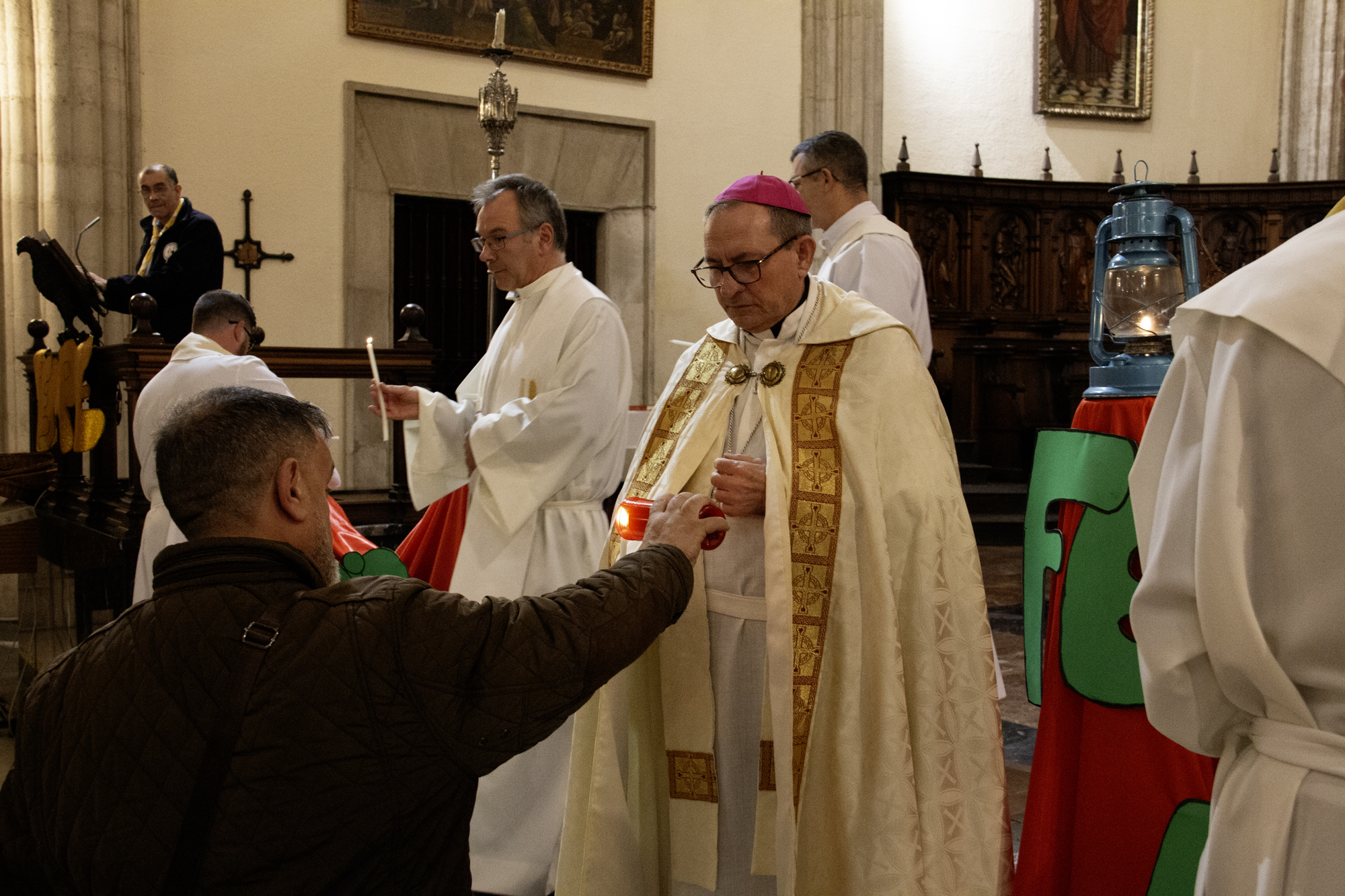 Además, el obispo se refirió la palabra «paz», recordando que la luz procede precisamente de una tierra marcada por el conflicto: «Precisamente allí donde nace la luz de la paz de Belén es donde más tenemos que pedir para que tengamos la paz». Amplió esta llamada al contexto europeo, señalando que «hay una guerra en Europa muy cerca de nuestras casas», en referencia al conflicto entre Rusia y Ucrania, e insistió en la responsabilidad de todos para construir la paz.