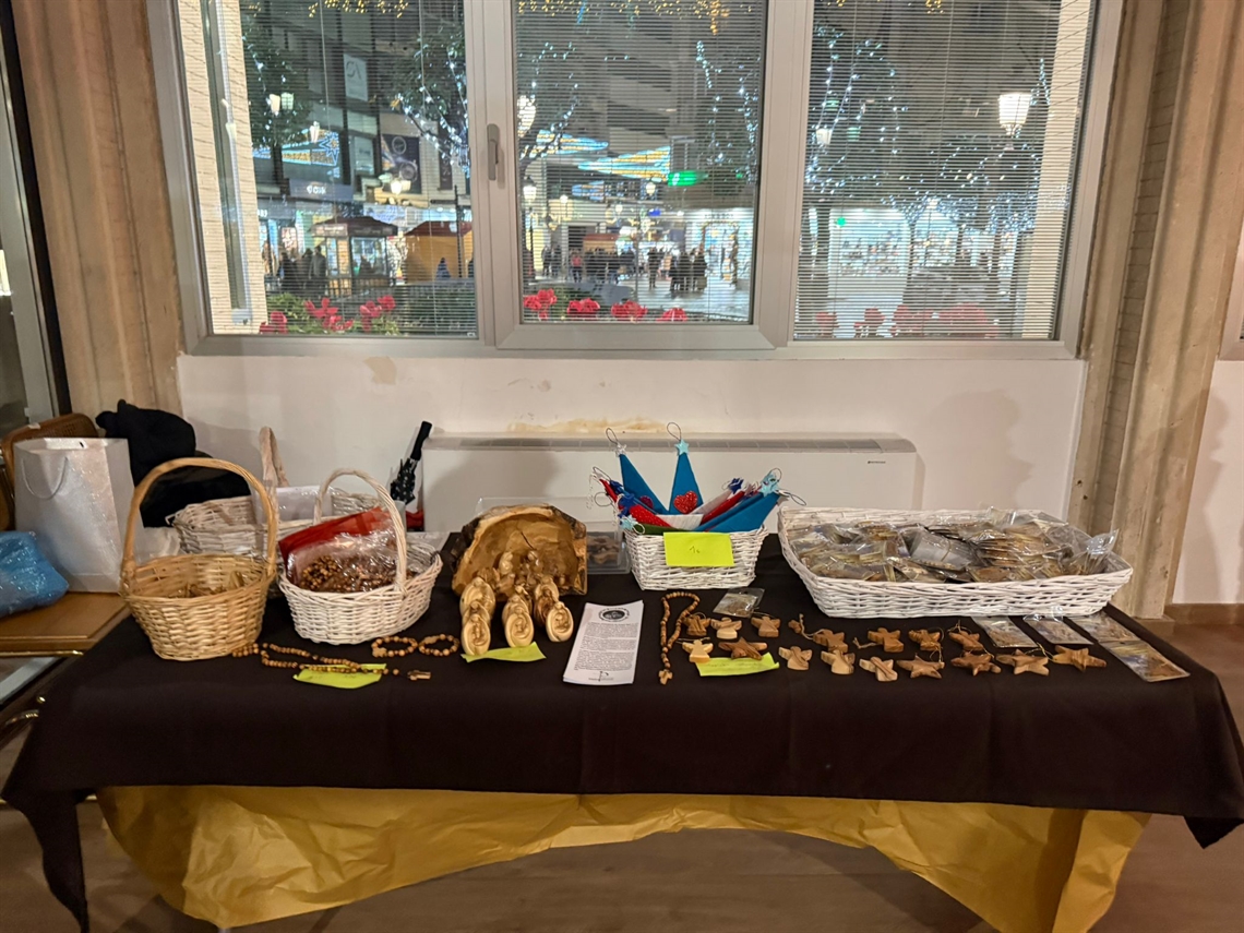 La Pastoral Universitaria de Ciudad Real ha instalado estos días un mercadillo solidario con productos de Tierra Santa en la sala de exposiciones del Ayuntamiento de Ciudad Real, el mismo espacio donde puede visitarse el belén napolitano municipal. La iniciativa quiere apoyar a familias cristianas de Belén gravemente afectadas por la actual situación sociopolítica de la región.