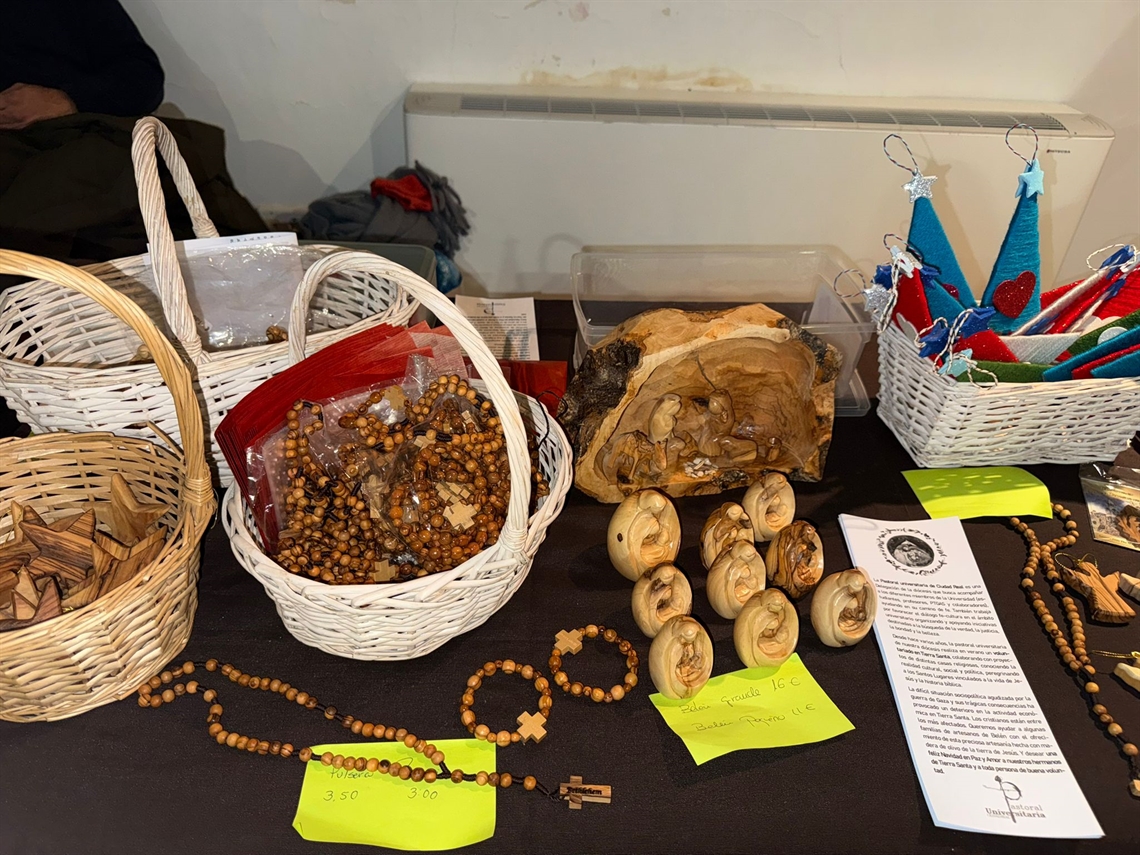 Desde hace varios años, la Pastoral Universitaria de la diócesis realiza un voluntariado de verano en Tierra Santa, colaborando con distintos proyectos de casas religiosas, conociendo de cerca la realidad cultural, social y política del lugar y peregrinando a los Santos Lugares vinculados a la vida de Jesús y a la historia bíblica. Fruto de esta relación continuada surge este mercadillo solidario, que ofrece artesanía elaborada en madera de olivo por familias de Belén.