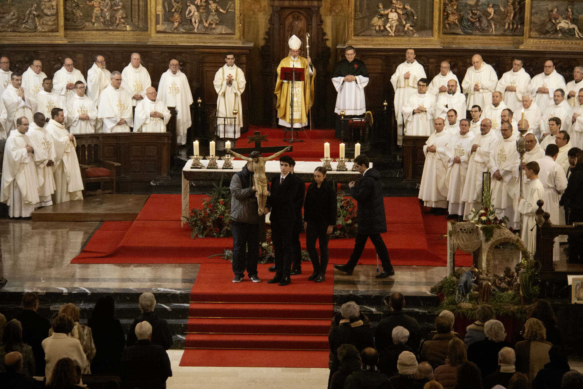 Te Deum. A continuación, la cruz del Año Jubilar fue retirada solemnemente del altar y llevada en procesión por jóvenes hasta la puerta de la catedral, donde fue incensada por última vez como signo visible del final de este tiempo de gracia.