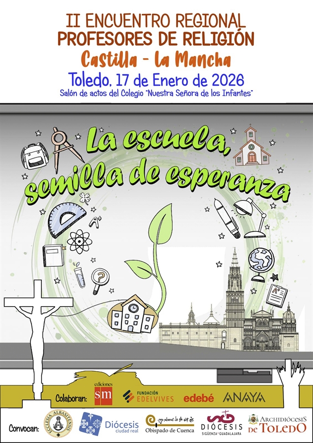 Convocado por las cinco diócesis de Castilla La Mancha, contará con la ponencia del profesor Francesc Torralba sobre «La escuela: semilla de esperanza». Además, se presentará el Proyecto «Huellas de luz: Descubriendo los sacramentos en la Catedral».