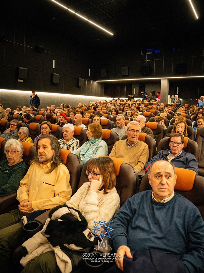 Doscientas personas, a sala completa, en los Multicines Cinemancha de Alcázar, disfrutaron del estreno, el 11 de febrero, del documental Una historia que aún late creado y dirigido por el alcazareño Ecuador Huertas y su equipo, en estrecha coordinación con la Comisión organizadora de los actos por el VIII Centenario de la Parroquia de Santa María La Mayor de Alcázar de San Juan.