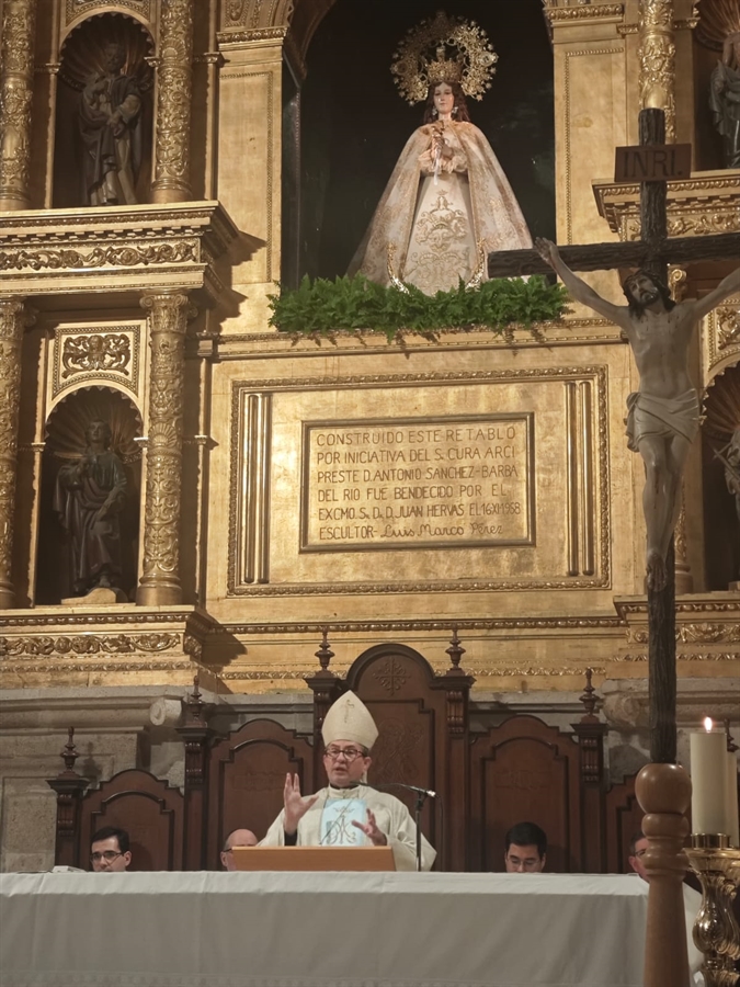 En la homilía, don Abilio animó a la comunidad a no «ser cristianos de mínimos», limitándonos únicamente al cumplimiento de los mandamientos, sino que estamos llamados a una entrega total a Cristo. En este sentido, enlazó su reflexión con los evangelios proclamados en los domingos anteriores —las bienaventuranzas y la llamada a ser sal de la tierra y luz del mundo— como expresión concreta de ese compromiso.