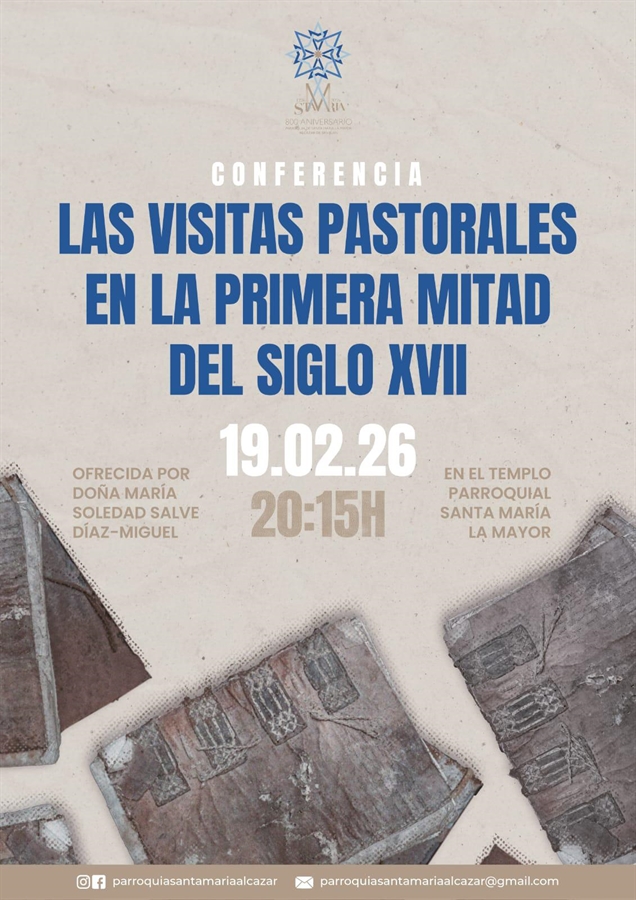 El templo parroquial de Santa María la Mayor de Alcázar acogerá el jueves 19 de febrero, a las 20:15 horas, la conferencia titulada Las visitas pastorales en la primera mitad del siglo XVII, impartida por María Soledad Salve Díaz-Miguel. Tendrá lugar tras la misa de la tarde.