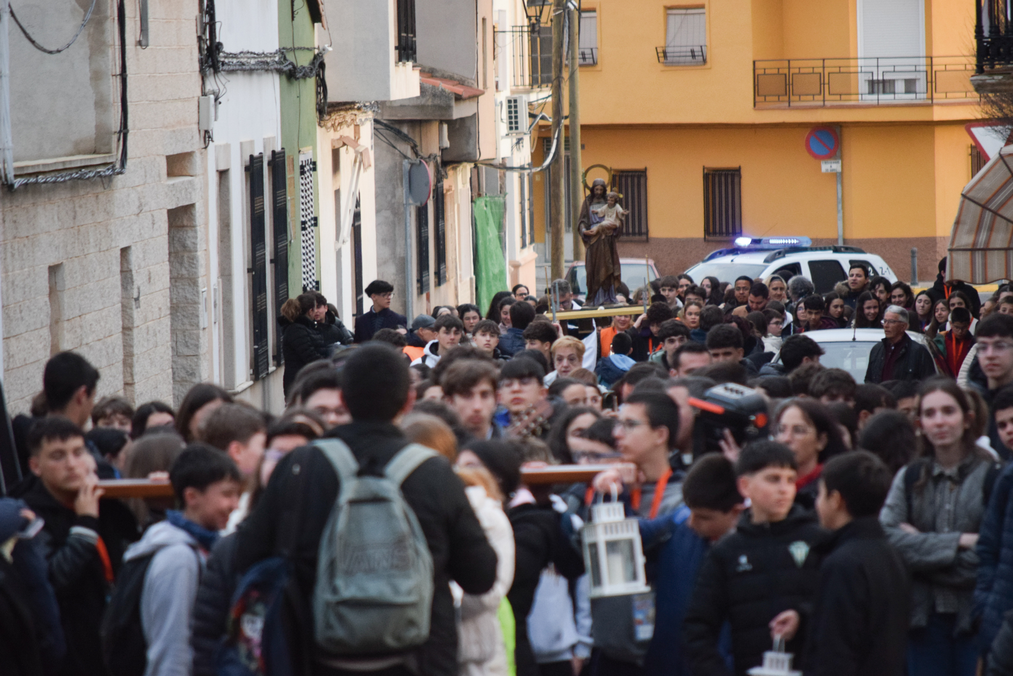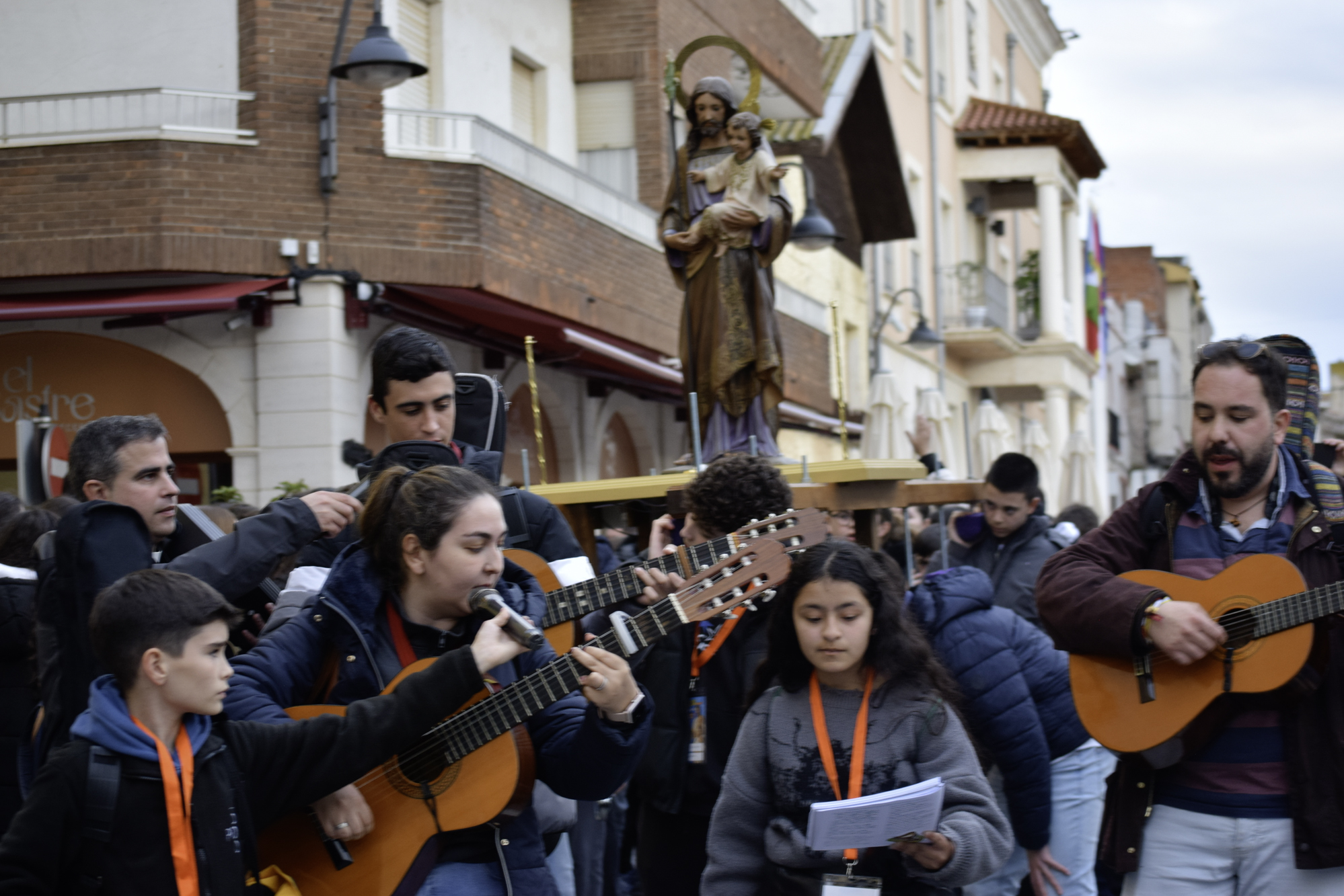 Desde la capilla, los participantes salieron en procesión por las calles de Socuéllamos, portando la cruz de los jóvenes —réplica de la cruz de las Jornadas Mundiales de la Juventud— y una imagen de san José, mientras cantaban y se dirigían hacia la parroquia para celebrar la eucaristía.