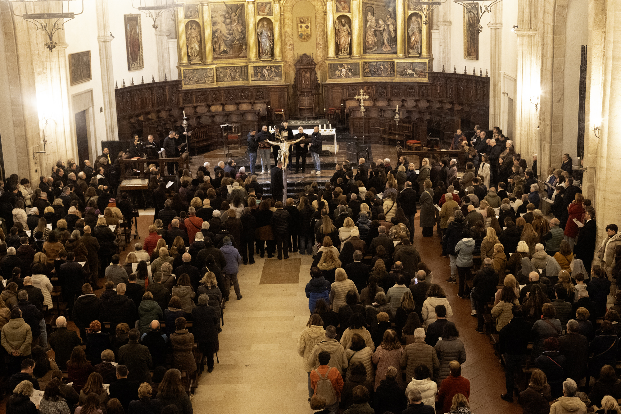 La última estación del viacrucis se rezó ya en el interior de la catedral. Fue el propio obispo quien dirigió esta estación final, antes de dirigirse a todos los presentes con unas palabras en las que invitó a contemplar con hondura el misterio pascual junto al Señor.