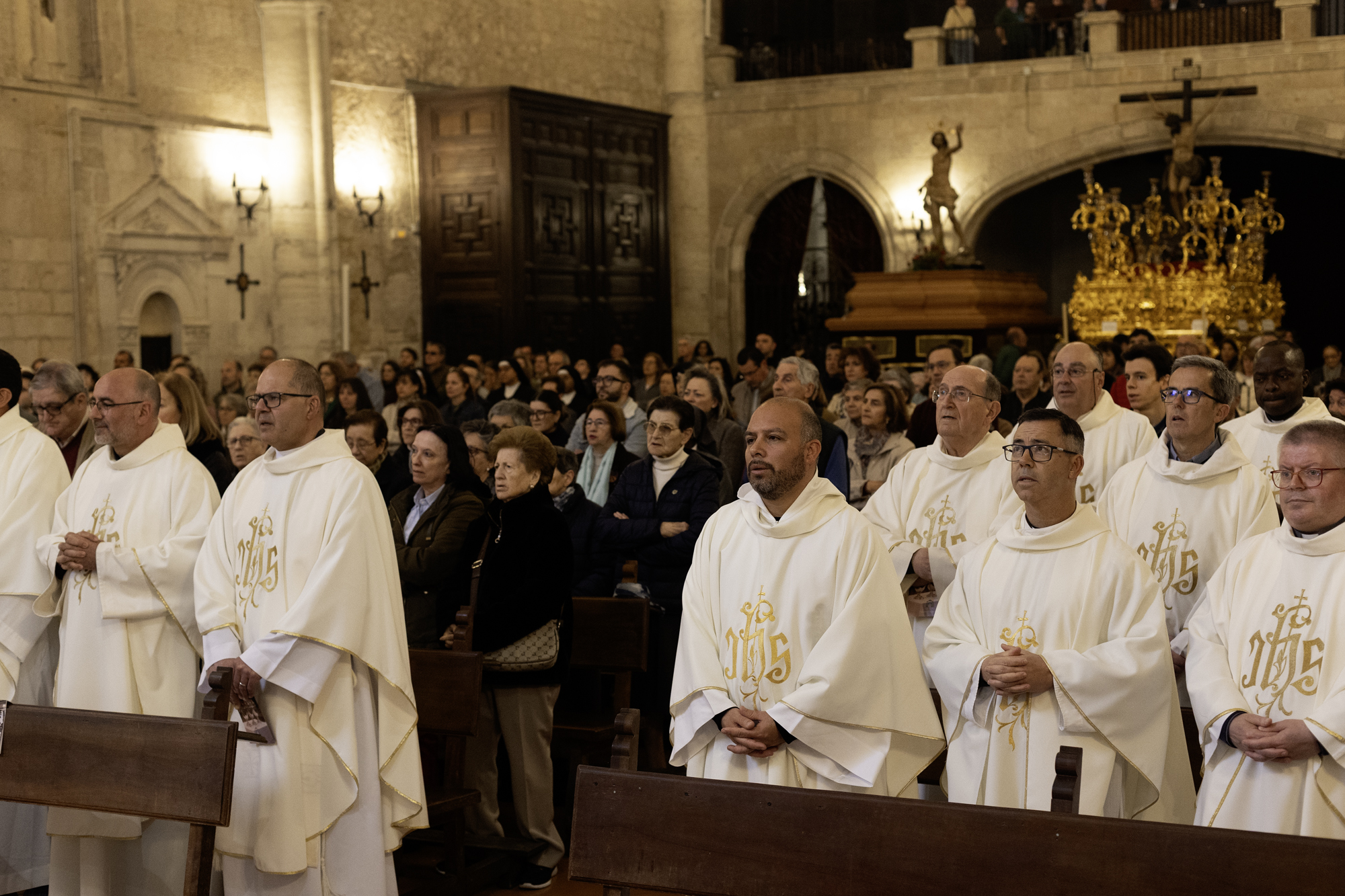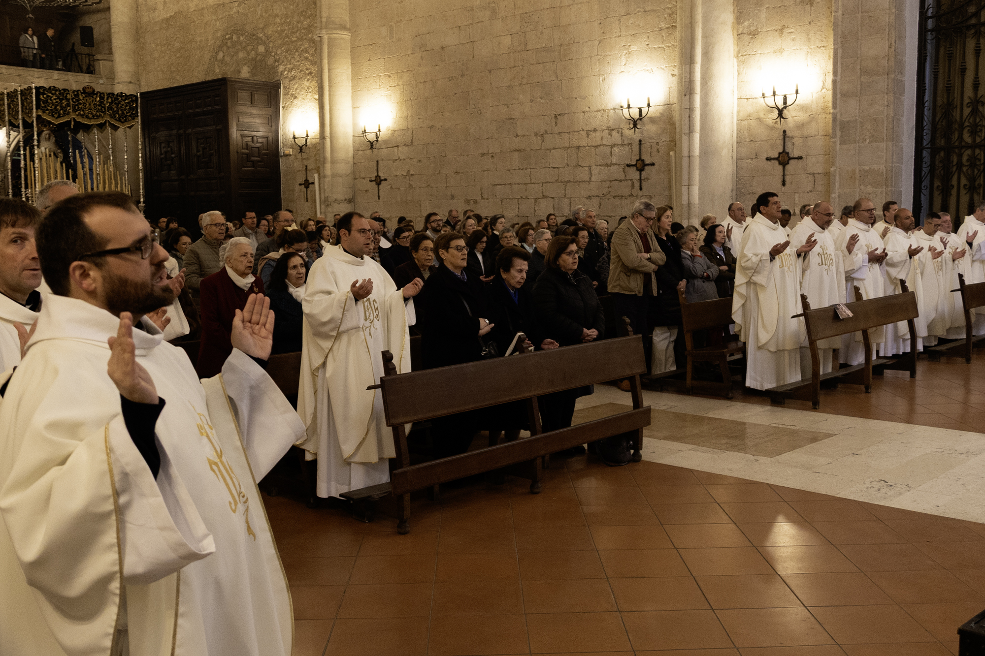 En la parte final de la homilía, don Abilio tuvo un recuerdo especial para los sacerdotes enfermos del presbiterio y encomendó a aquellos que han fallecido en el último año. Después, antes de la renovación de las promesas sacerdotales, invitó a sus hermanos sacerdotes a hacerlo «con humildad» y «con mucha esperanza», confiando en la misericordia de Dios.