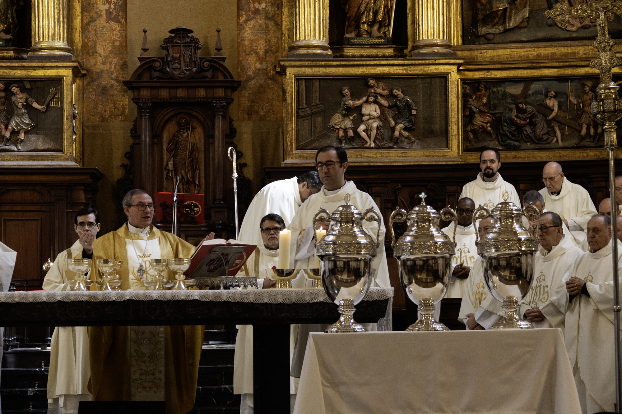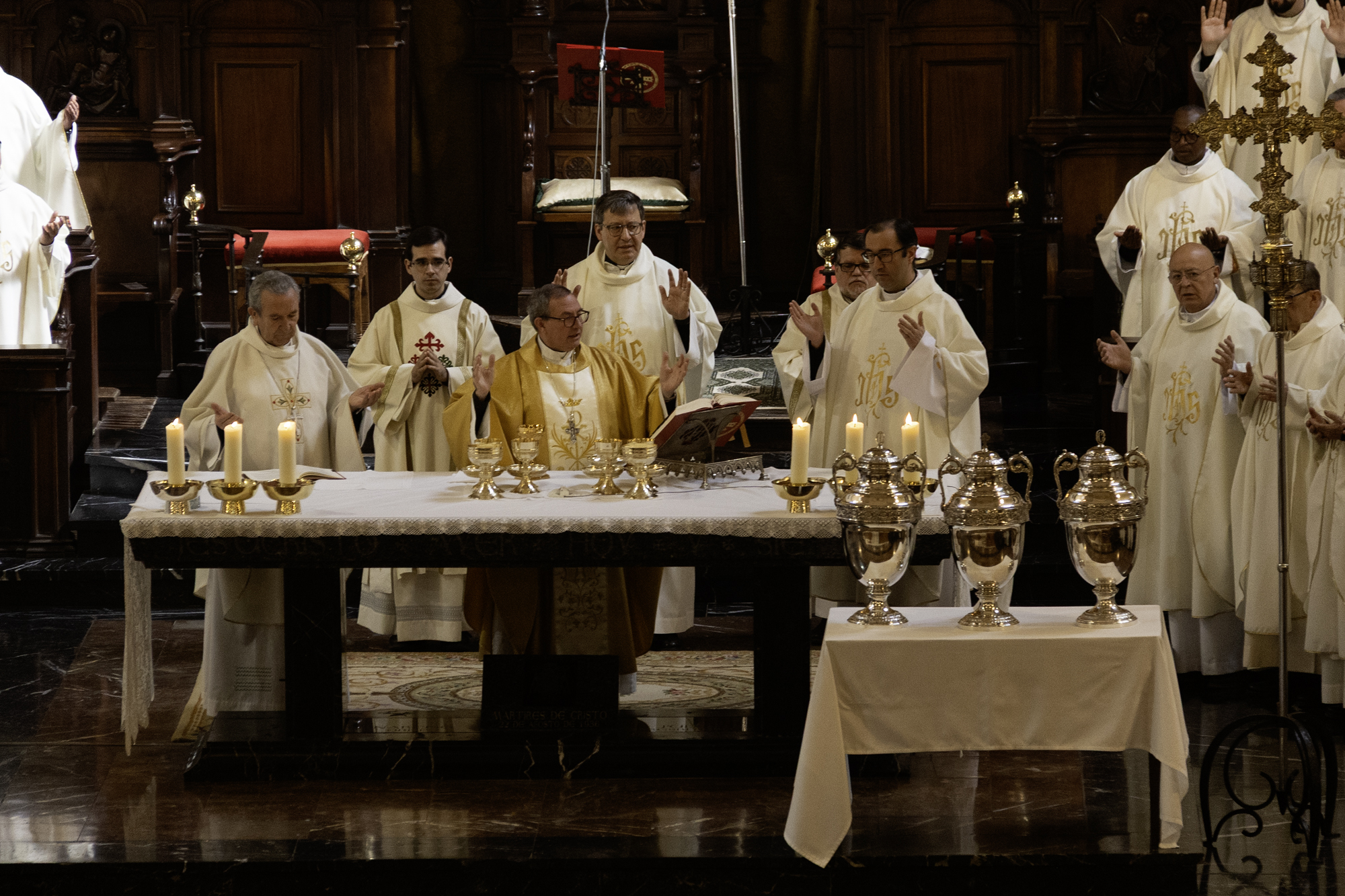 En esa línea, agradeció con sus palabras la presencia de tantos fieles en la catedral, subrayando que lo que en esta eucaristía se celebra alcanza a toda la diócesis. «Los óleos que bendecimos y el crisma que será consagrado están destinados a toda la diócesis, a los niños, a los jóvenes, a los adultos y a los ancianos […]. Va a ser toda la diócesis la que será tocada por esta gracia a través de los óleos».
