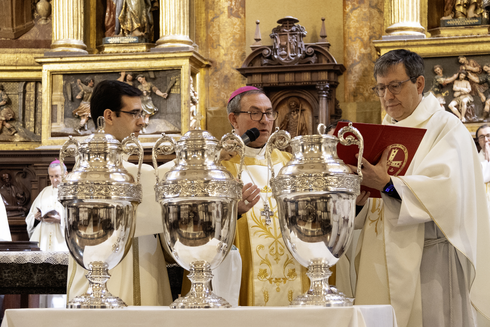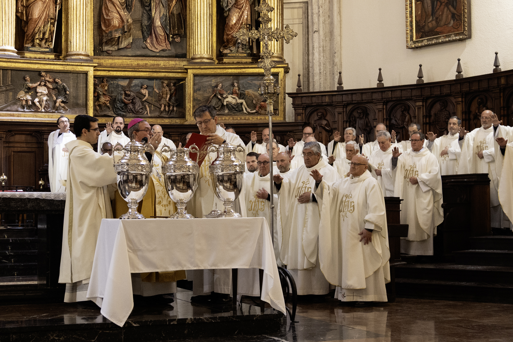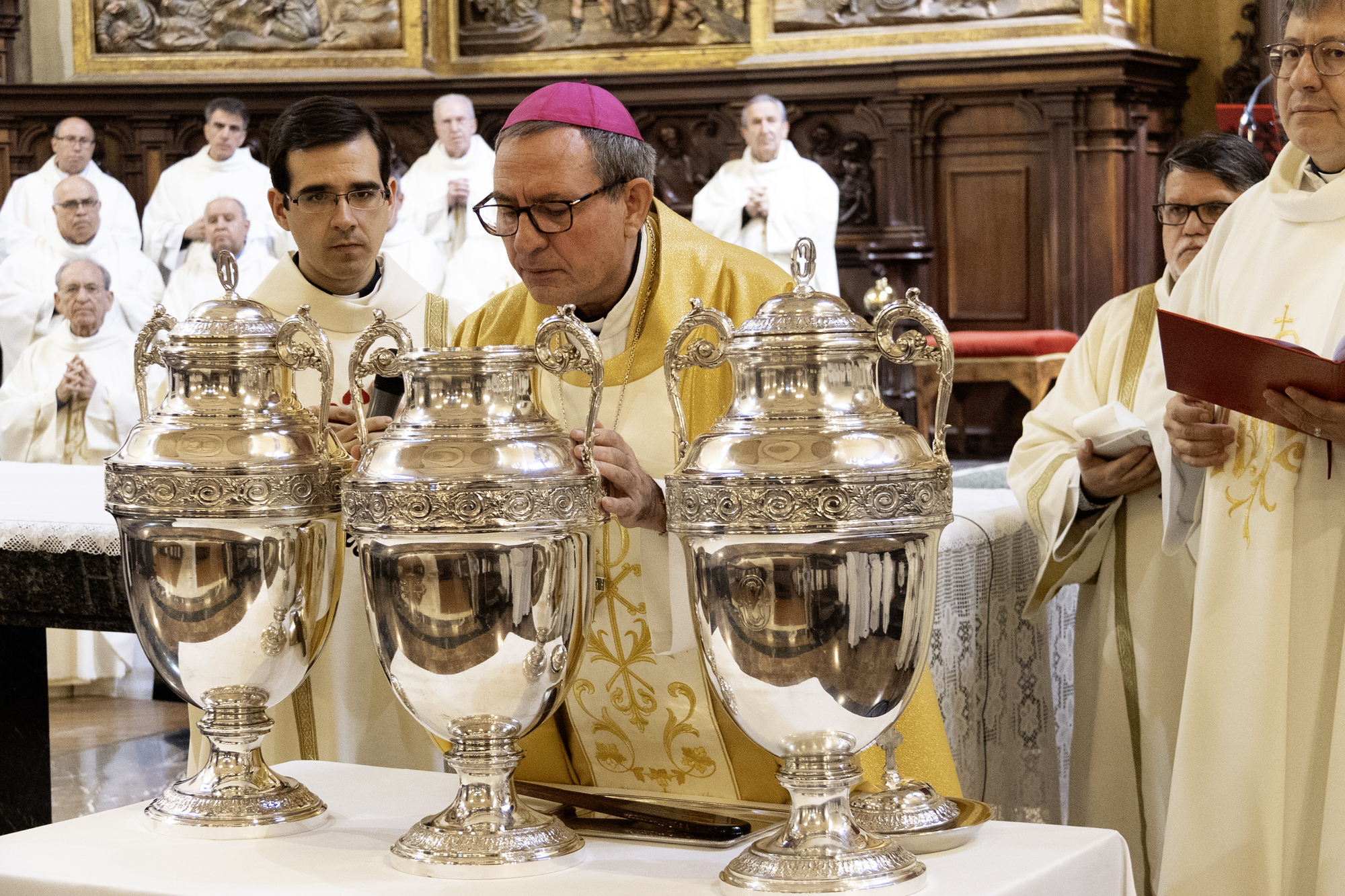 En esta celebración, el obispo ha consagrado el santo crisma y ha bendecido el óleo de los catecúmenos y el de los enfermos, que serán distribuidos después por toda la diócesis para la celebración de los sacramentos. Además, los sacerdotes renovaron sus promesas sacerdotales, en un gesto que subraya la comunión con el obispo.