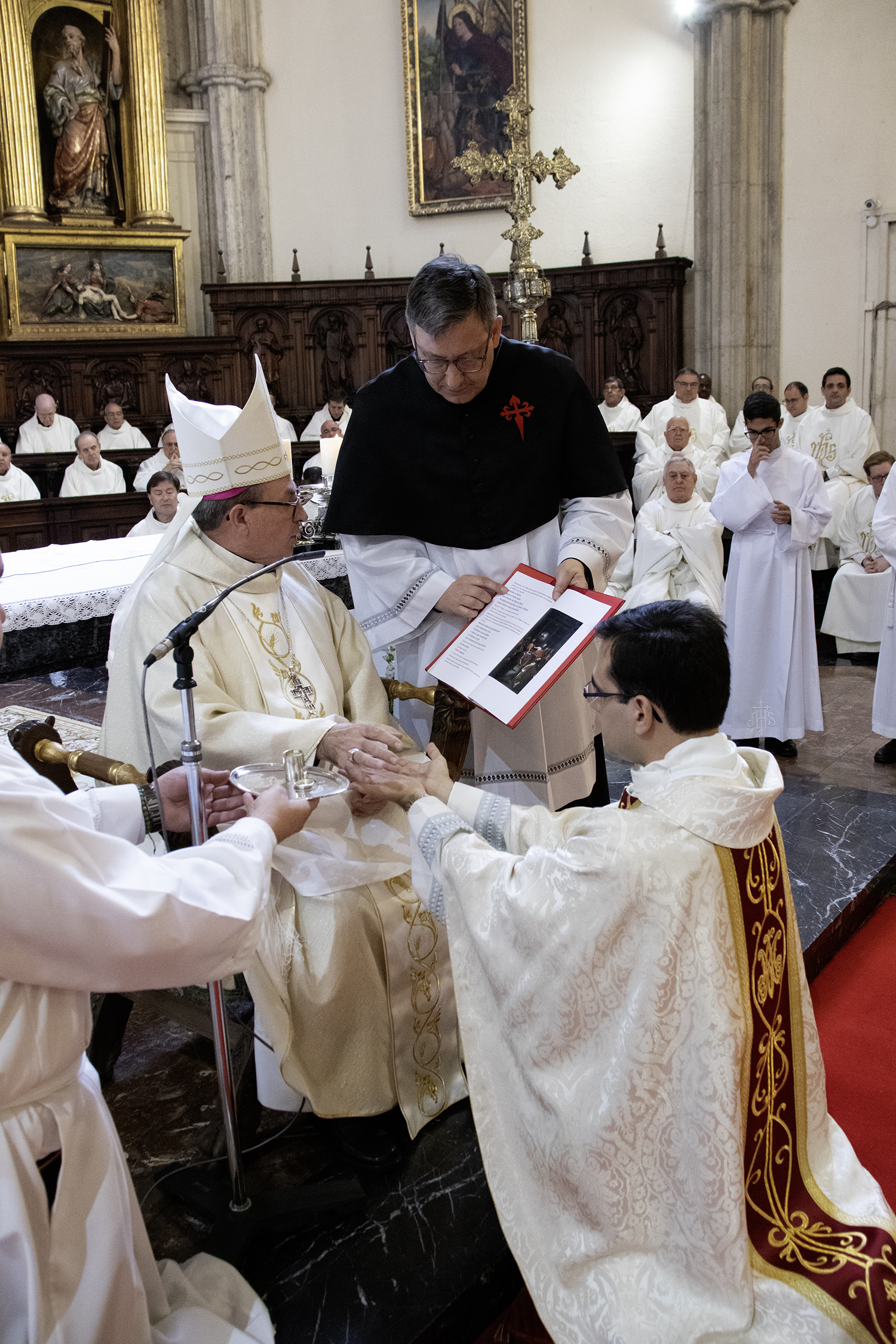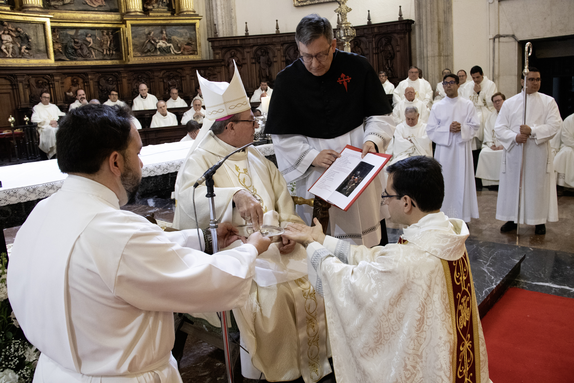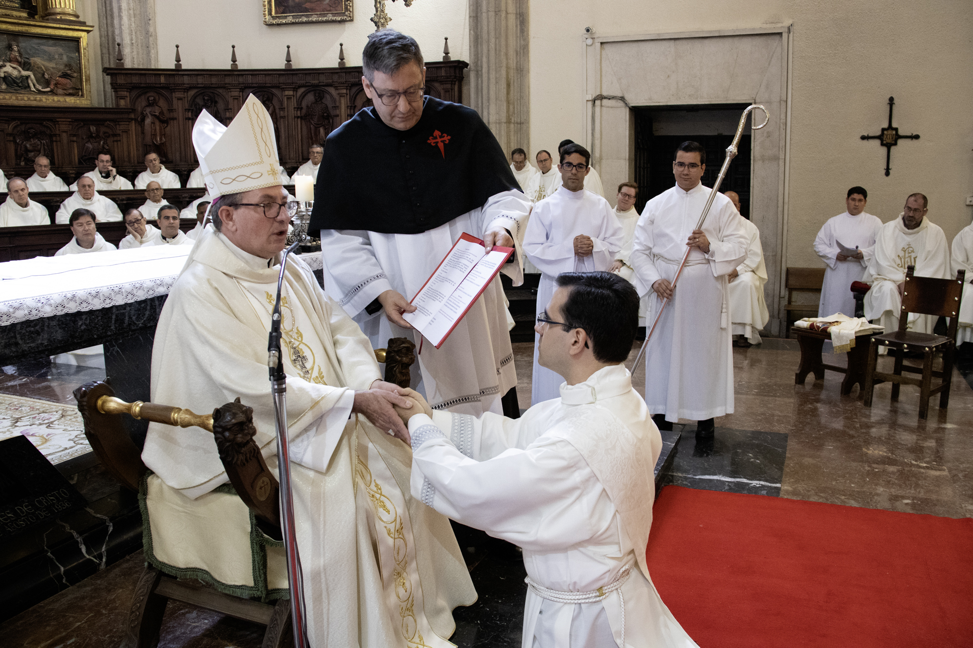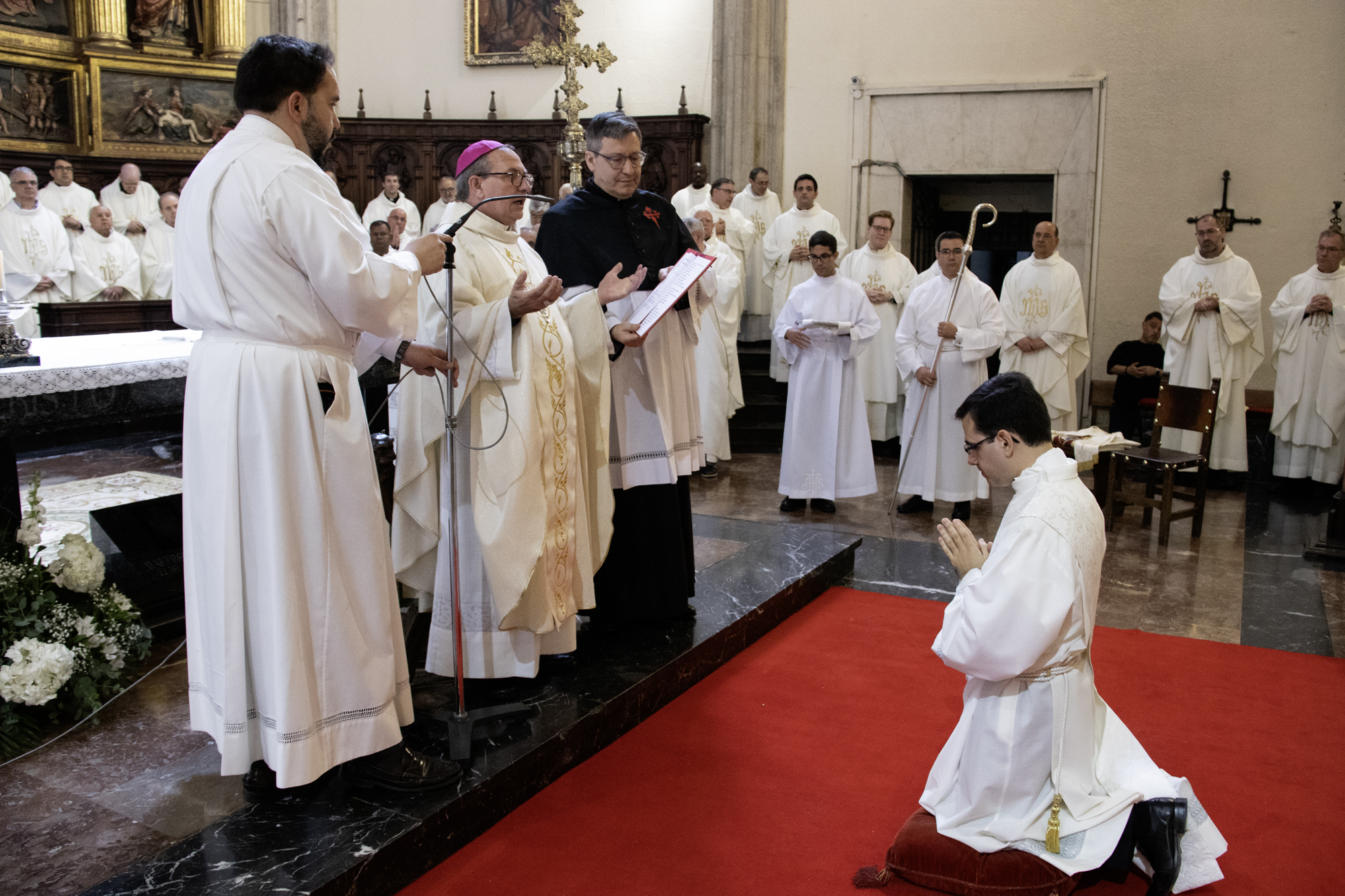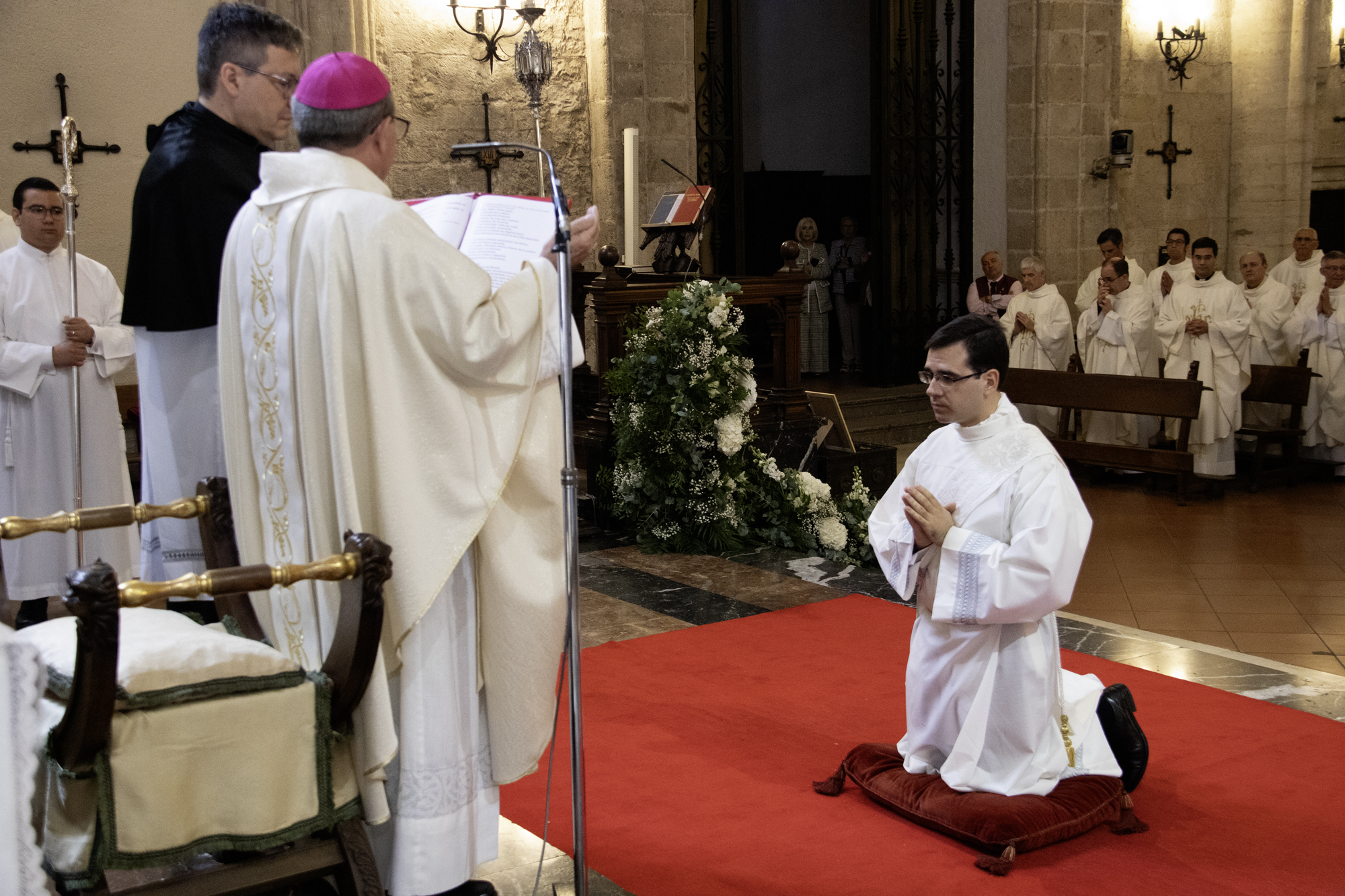 Tras la presentación del candidato, Diego Plana fue llamado por su nombre y respondió públicamente a la llamada de la Iglesia, disponiéndose a recibir el sacramento del Orden en el grado del presbiterado. En ese contexto, el obispo recordó que, después del diaconado, este momento suponía ya una entrega plena, «un sí total a Dios que te ha ido preparando y formando hasta este momento en tu vida».