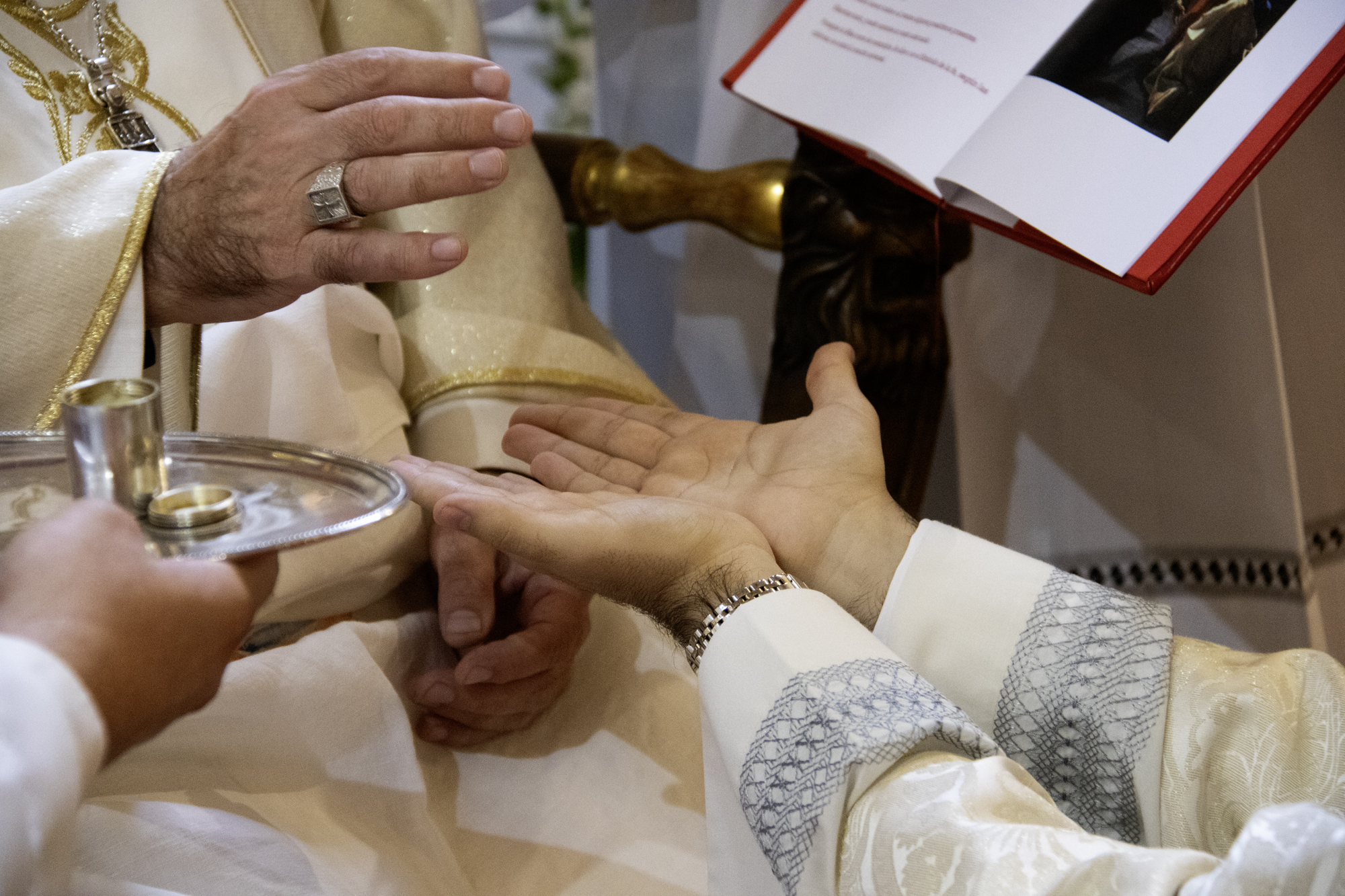 La liturgia continuó con los ritos explicativos propios de la ordenación presbiteral. El nuevo sacerdote fue revestido con la estola y la casulla, signos visibles de su nuevo ministerio; después, el obispo ungió con el santo crisma las palmas de sus manos, consagrándolas para bendecir, santificar y ofrecer el sacrificio eucarístico. Más tarde recibió la patena con el pan y el cáliz con el vino, encomendándosele así aquello que, desde ahora, presentará sacramentalmente en el altar. Finalmente, el obispo y los presbíteros le dieron el abrazo de paz, acogiéndolo en el presbiterio diocesano.
