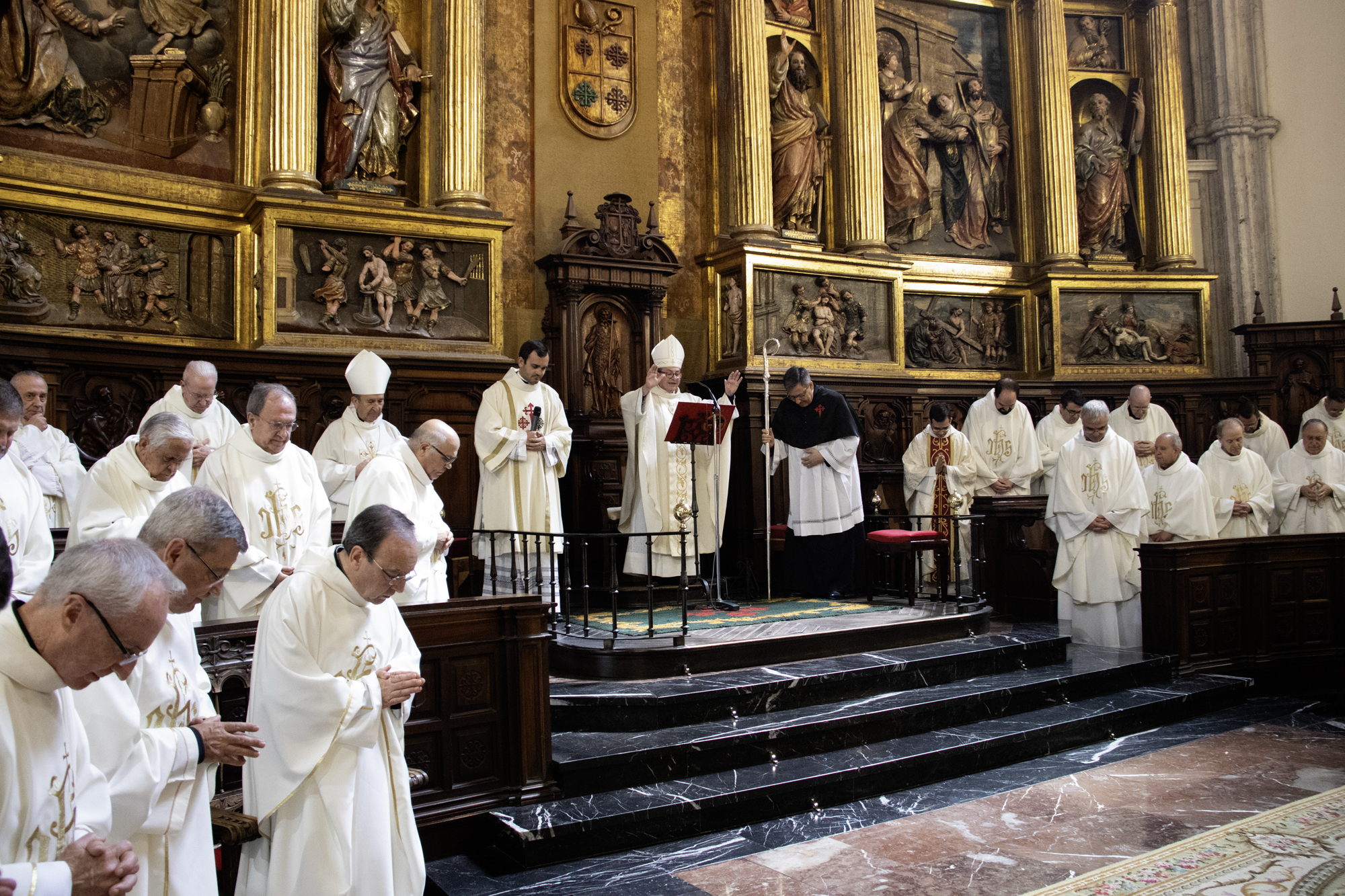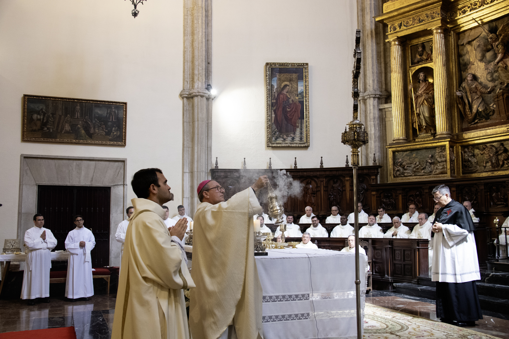 En la homilía, don Abilio se detuvo también en el estilo pastoral que debe caracterizar a todo sacerdote. Citando la primera carta de san Pedro, enumeró tres actitudes fundamentales para el ejercicio del ministerio. La primera, pastorear «no a la fuerza, sino de buena gana», porque «el ministerio no tiene que ser nunca una obligación que nos aplasta» y porque «la alegría y el gusto por servir, la alegría y el gusto por evangelizar es una primera manera de evangelizar». La segunda, vivir el sacerdocio «no por sórdida ganancia, sino con entrega generosa», recordando las palabras del evangelio: «Gratis lo recibisteis, dadlo gratis». Así presentó el sacerdocio como signo de gratuidad en medio de un mundo que mide con frecuencia a las personas por su utilidad.