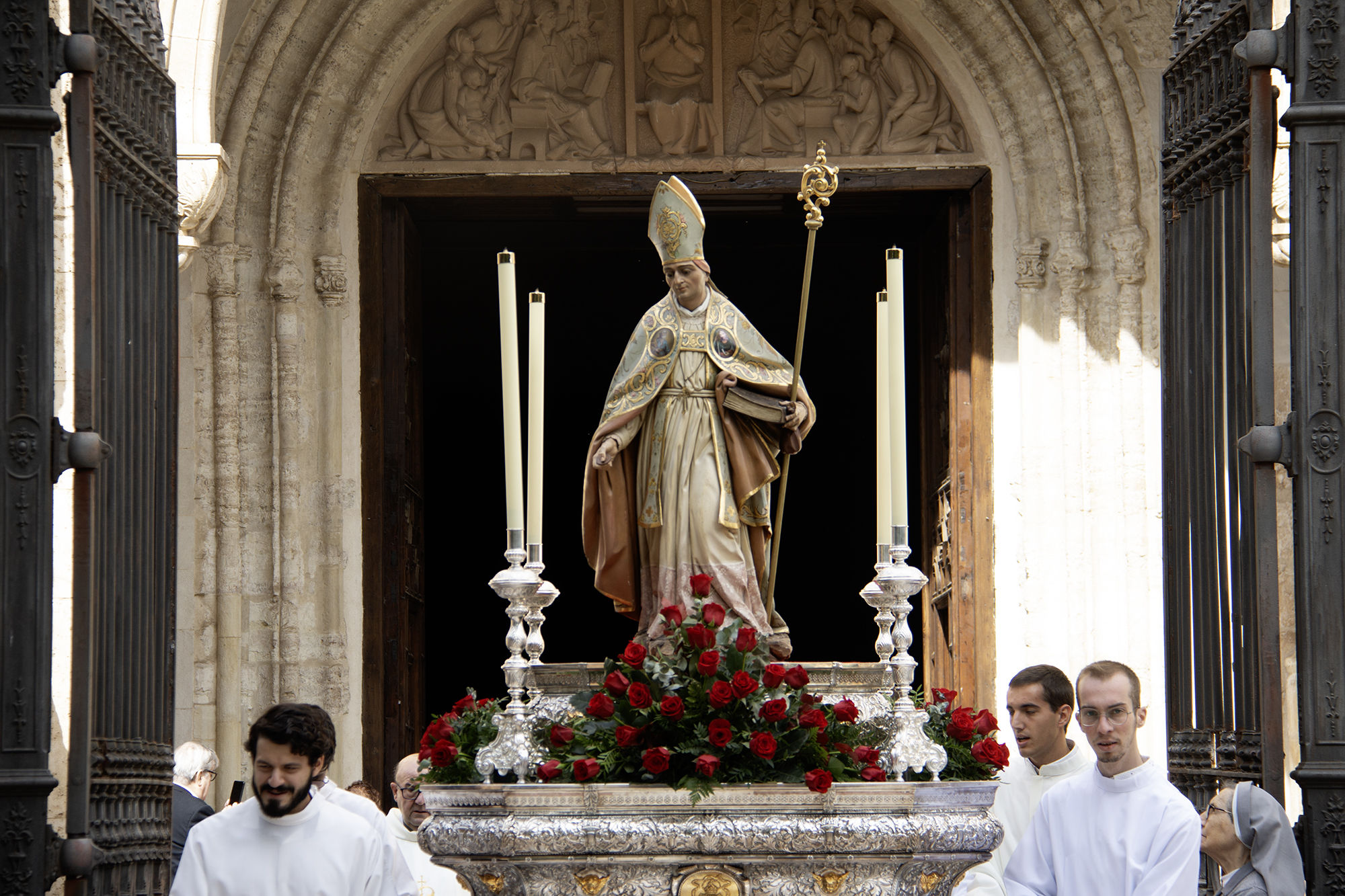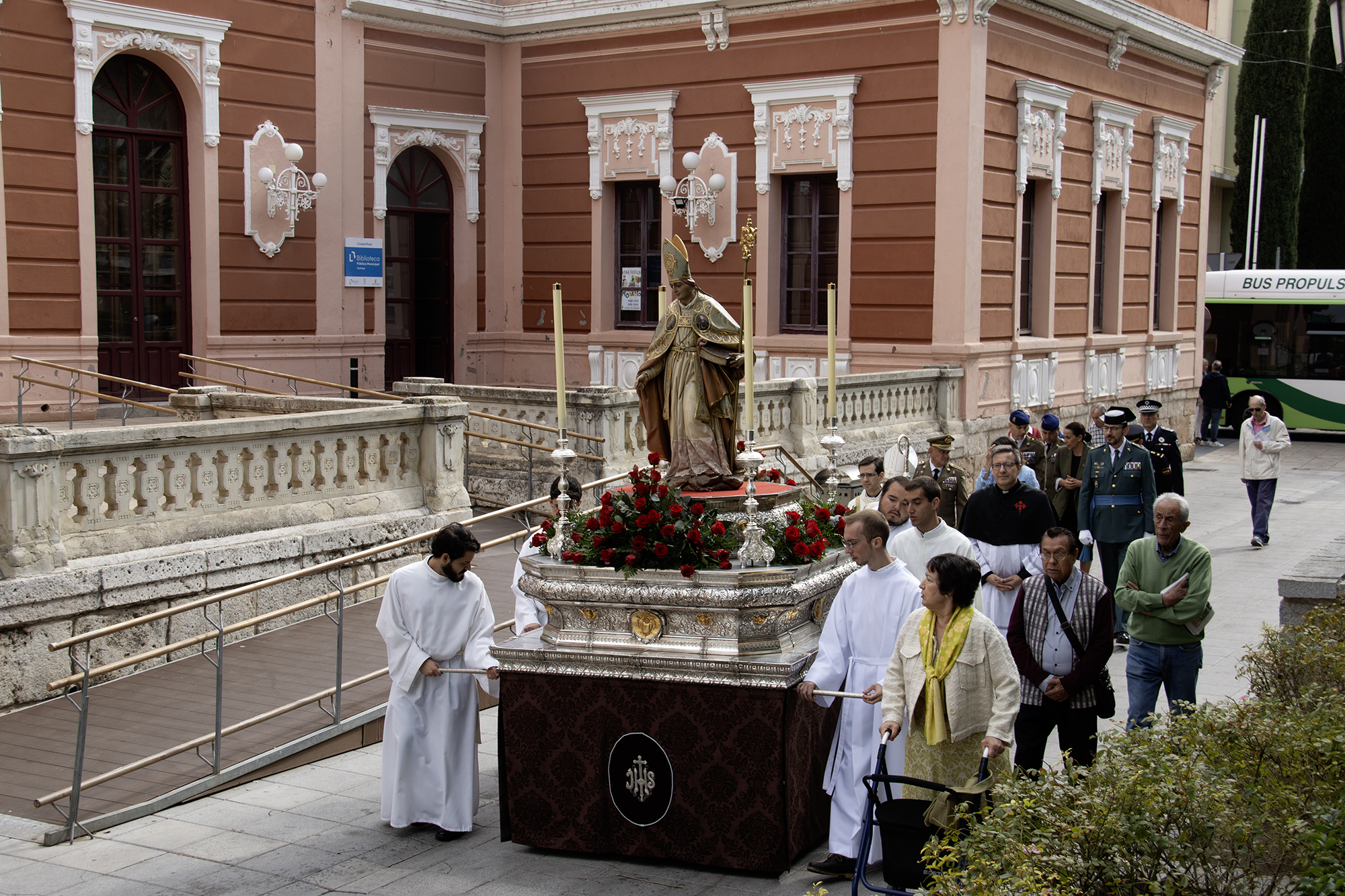 Antes del inicio de la misa, toda la comunidad salió en procesión por los jardines del Prado, en torno a la catedral, acompañando a la imagen de santo Tomás, que portaban varios seminaristas. Tras dar una vuelta al templo, la procesión regresó al interior para continuar con la celebración eucarística.