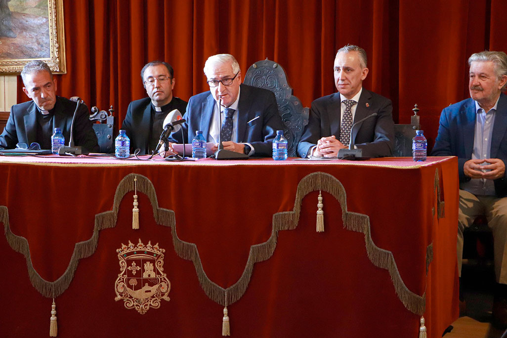 El salón de plenos del edificio consistorial ha sido esta mañana el marco del solemne acto de apertura a una cita congresual que congrega a alrededor de 60 inscritos, junto a un nutrido grupo de ponentes y eruditos, así como a autoridades y representantes de distintas instituciones.