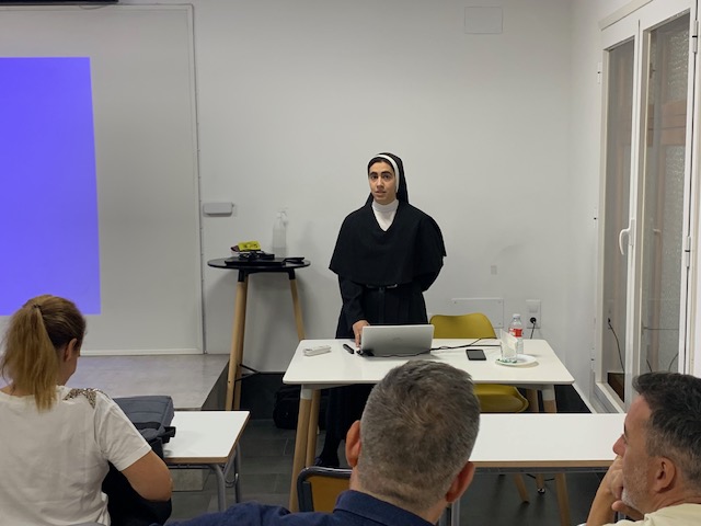 Después de la oración, Sor Cristina Cipriano Díaz, religiosa de la comunidad de Agustinas, impartió la ponencia Del universo al metaverso: redefiniendo la frontera de la realidad.