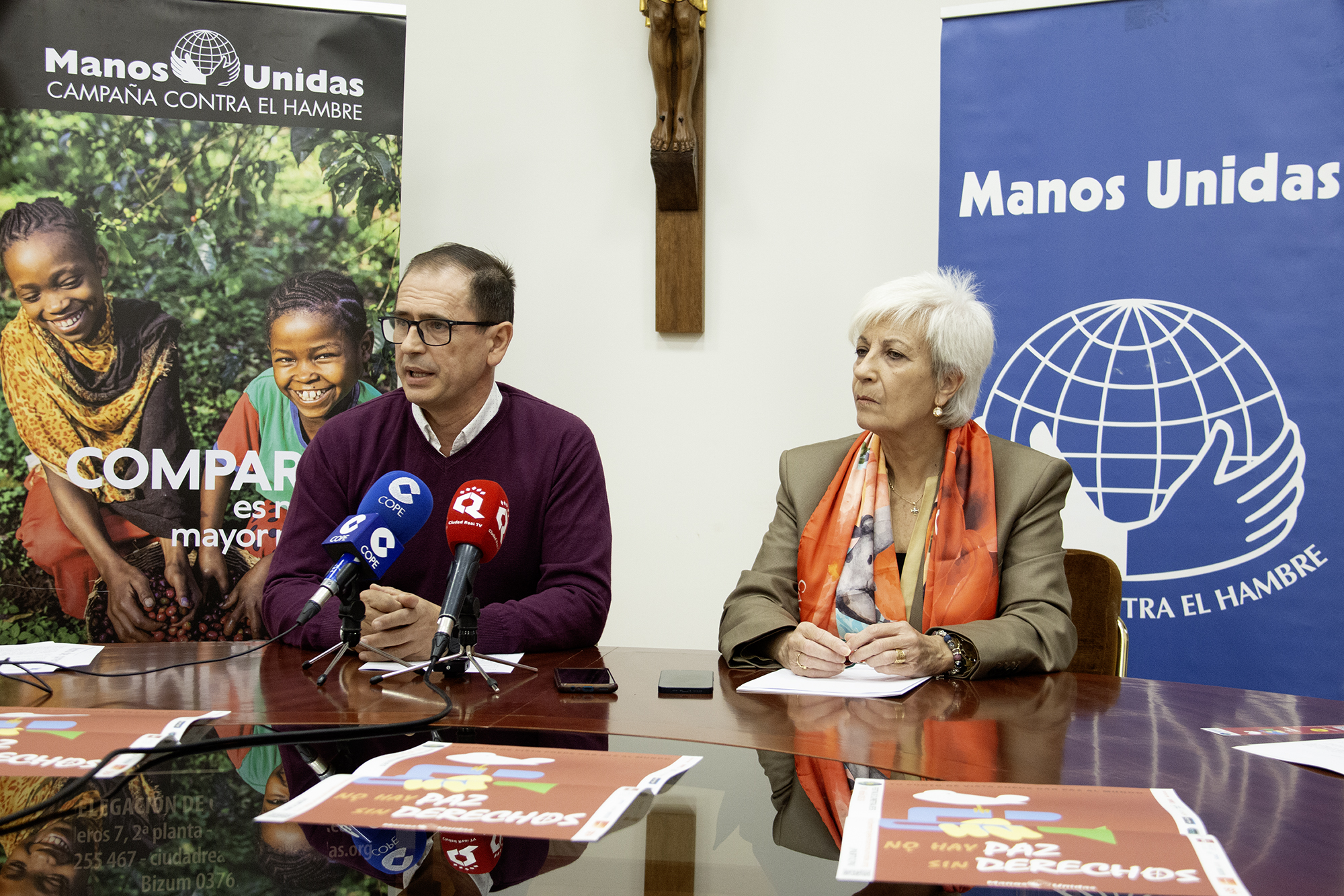 Esta mañana se ha presentado la XVII edición del Festival de Clipmetrajes de Manos Unidas, este año con el lema No hay paz sin derechos. En el acto han intervenido Conchi Martínez, presidenta de Manos Unidas en Ciudad Real, y Luis Beamud, voluntario encargado del festival en la provincia.
