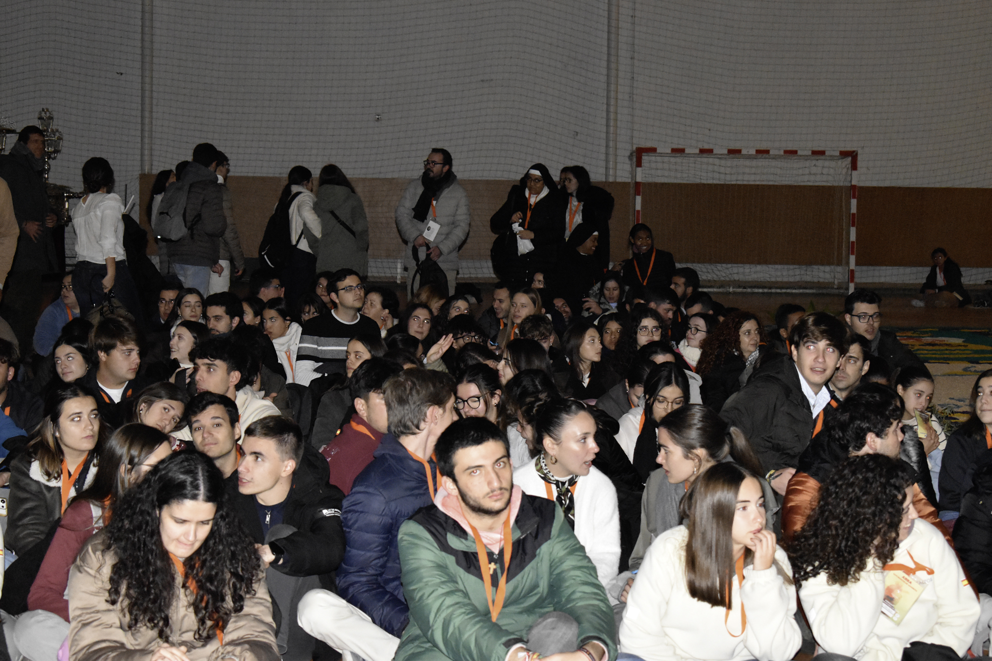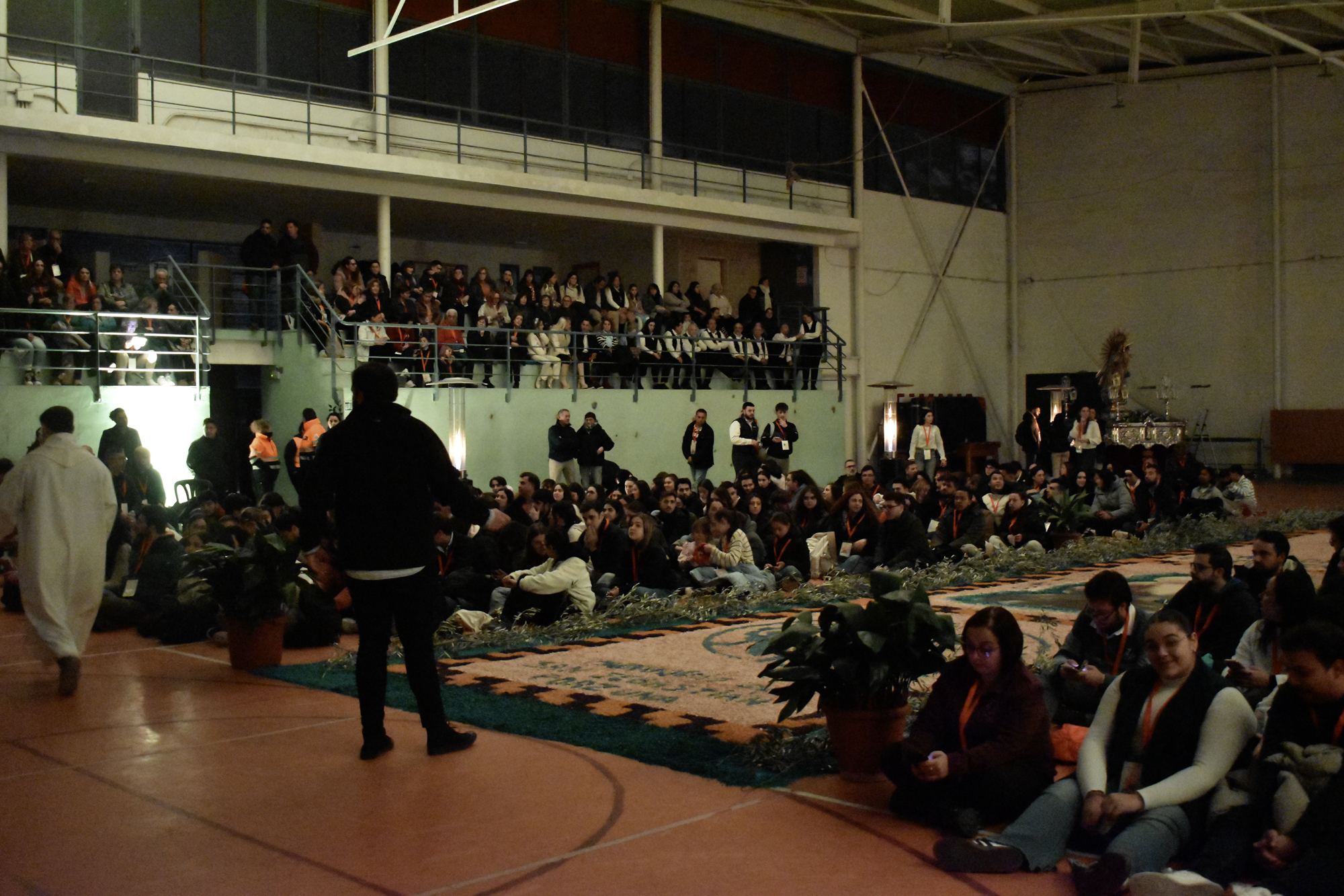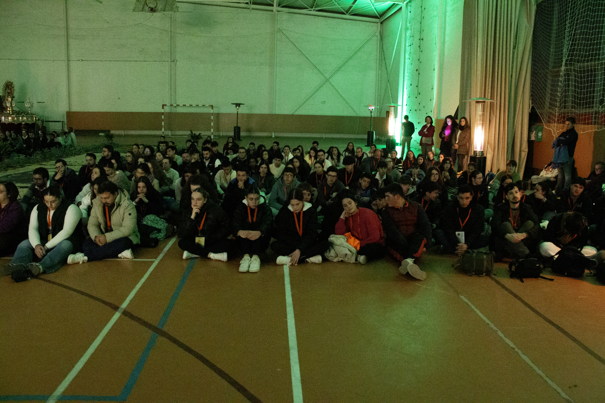 Tras la cena, que ofreció también la parroquia de Porzuna, el grupo se reunió en el pabellón deportivo, donde tuvo que celebrarse la vigilia a causa de la falta de espacio en el templo parroquial. Este momento de la Marcha es el más esperado por los jóvenes cada año. En esta ocasión, se compuso de cuatro momentos en los que se vio reflejada la imagen de Dios Padre a lo largo de la Historia de la salvación. Con una representación teatral y con la música de la Coral Diocesana, la vigilia introdujo a todos los jóvenes en unos momentos de oración y reflexión íntimos y comunitarios.