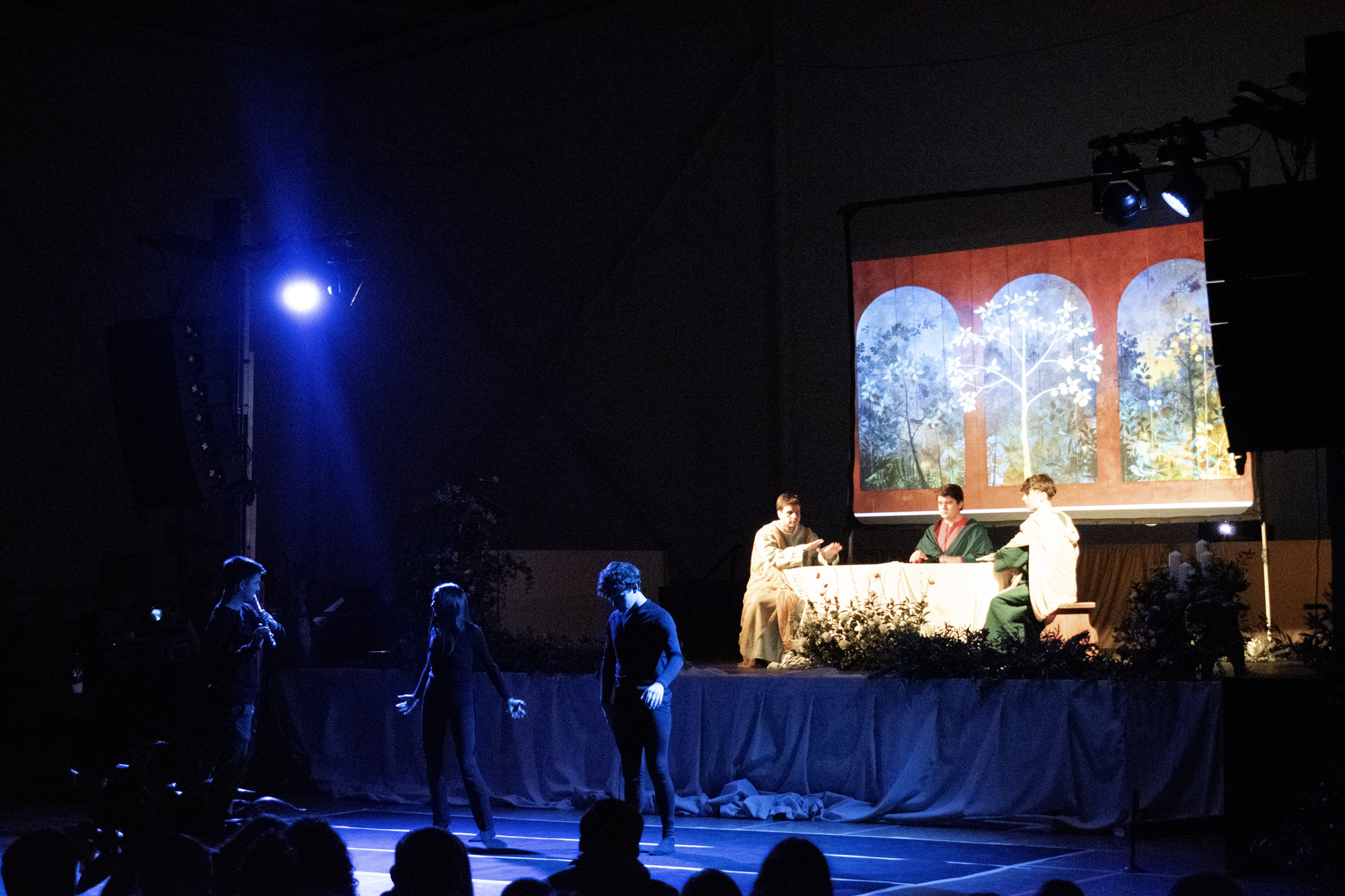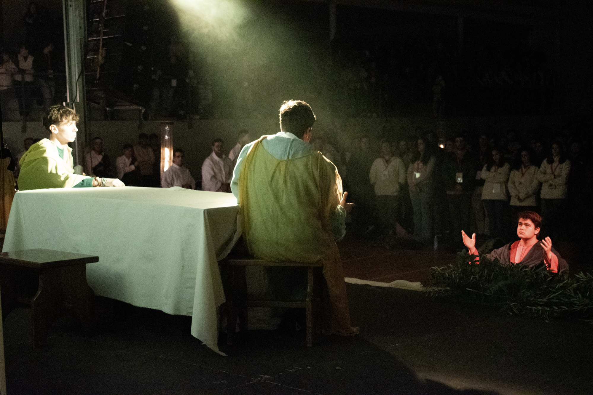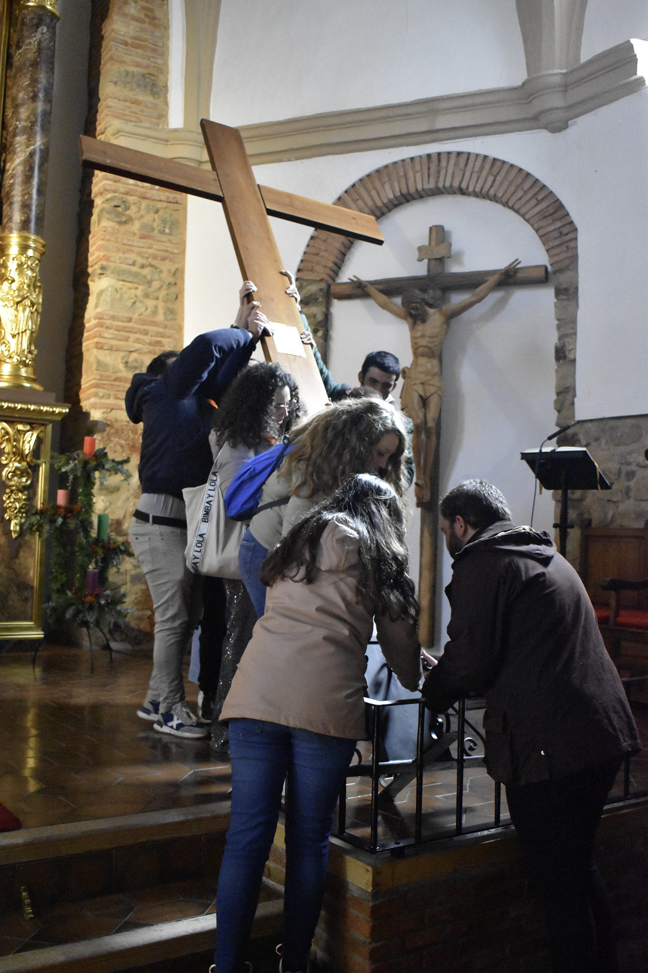 Tras la cena, que ofreció también la parroquia de Porzuna, el grupo se reunió en el pabellón deportivo, donde tuvo que celebrarse la vigilia a causa de la falta de espacio en el templo parroquial. Este momento de la Marcha es el más esperado por los jóvenes cada año. En esta ocasión, se compuso de cuatro momentos en los que se vio reflejada la imagen de Dios Padre a lo largo de la Historia de la salvación. Con una representación teatral y con la música de la Coral Diocesana, la vigilia introdujo a todos los jóvenes en unos momentos de oración y reflexión íntimos y comunitarios.