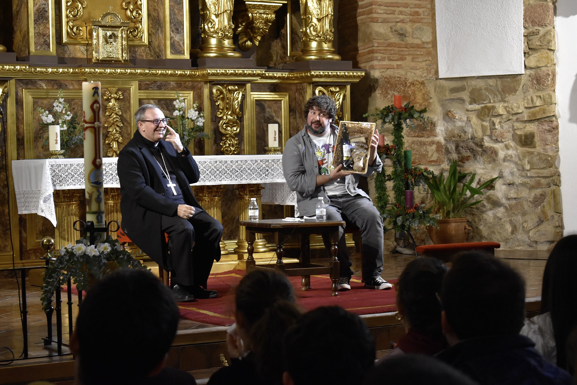 Tras rezar todos juntos ante el sagrario, comenzó la actividad «Tengo una pregunta para usted», en la que los jóvenes pudieron cuestionar al obispo sobre temas sociales, religiosos y humanos que les preocupan. Junto al obispo, respondía también las preguntas de los jóvenes Fran Ramírez, director de Juventud de la Conferencia Episcopal.