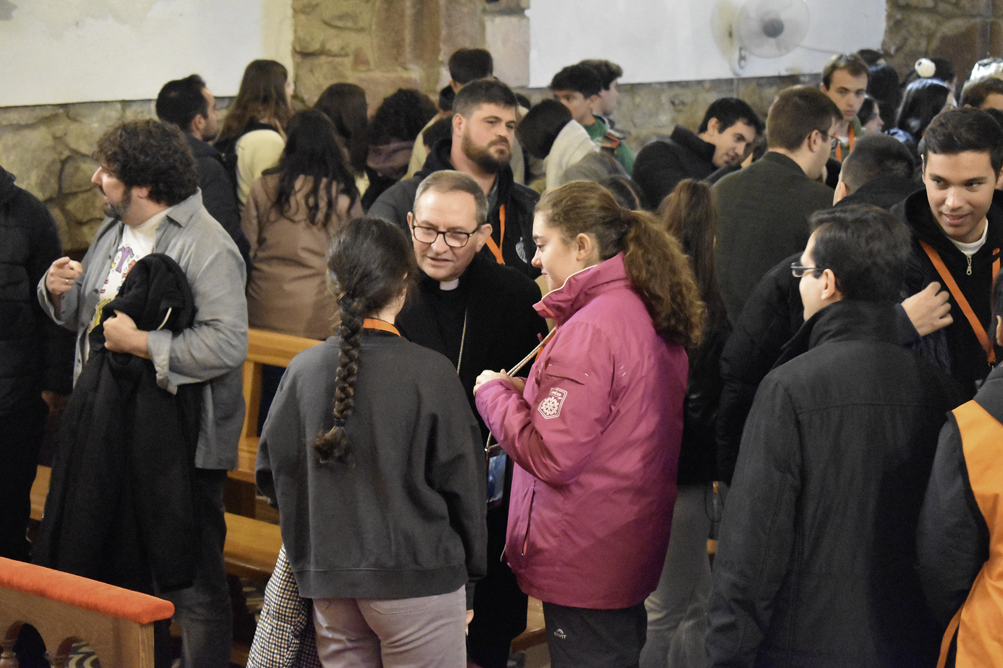El obispo explicó su vocación, que nació en la parroquia «en unos años en los que la fe se vivía de forma muy natural». Y precisamente fue esto lo que subrayó, la maduración de la vocación en un ambiente de parroquia, de fe, de Iglesia. En otro momento, y también refiriéndose a la vocación, aconsejó a todos los jóvenes contar con el acompañamiento en la vida cristiana, para no caminar a solas y tener la ayuda de alguien con quien confrontar las decisiones y ayude en el discernimiento. Les insistió, además, en que estuvieran cerca de las situaciones de sufrimiento, sobre todo estando presentes, ofreciendo una palabra de fe cuando sea necesario, una fe que nos ayuda a ser felices». Y siempre siendo conscientes de que «Jesús está con nosotros en todo momento», dijo.