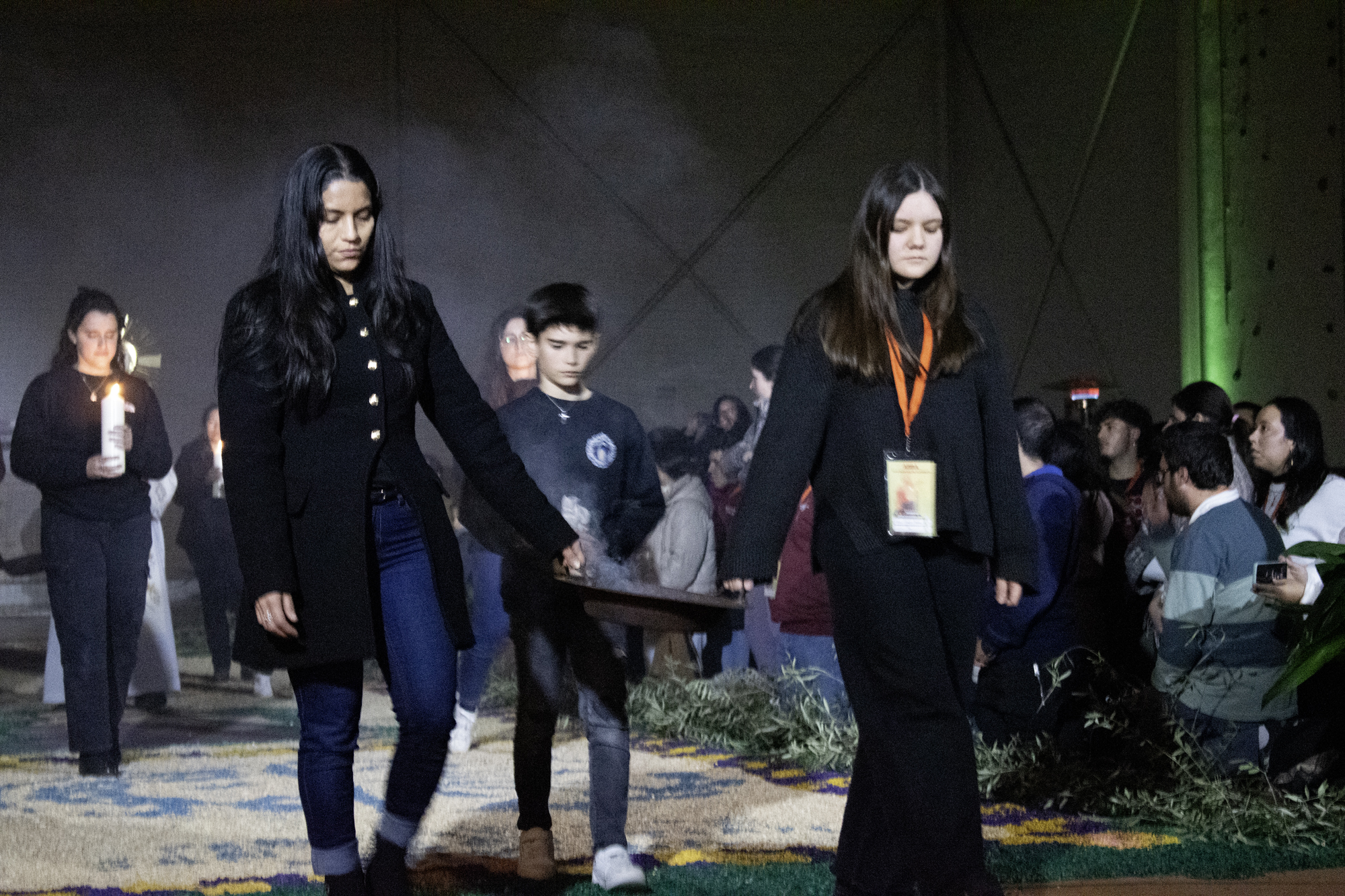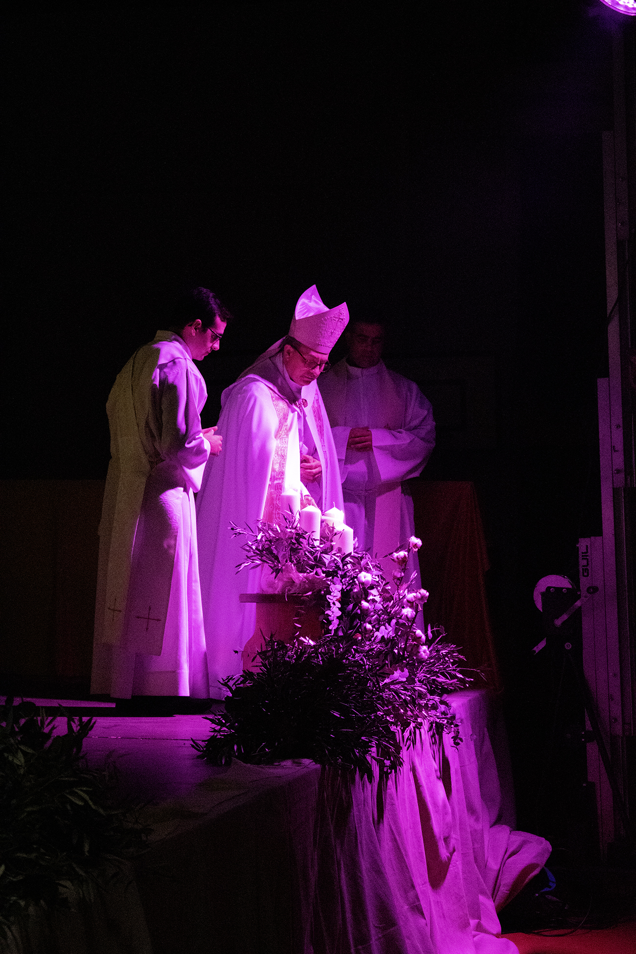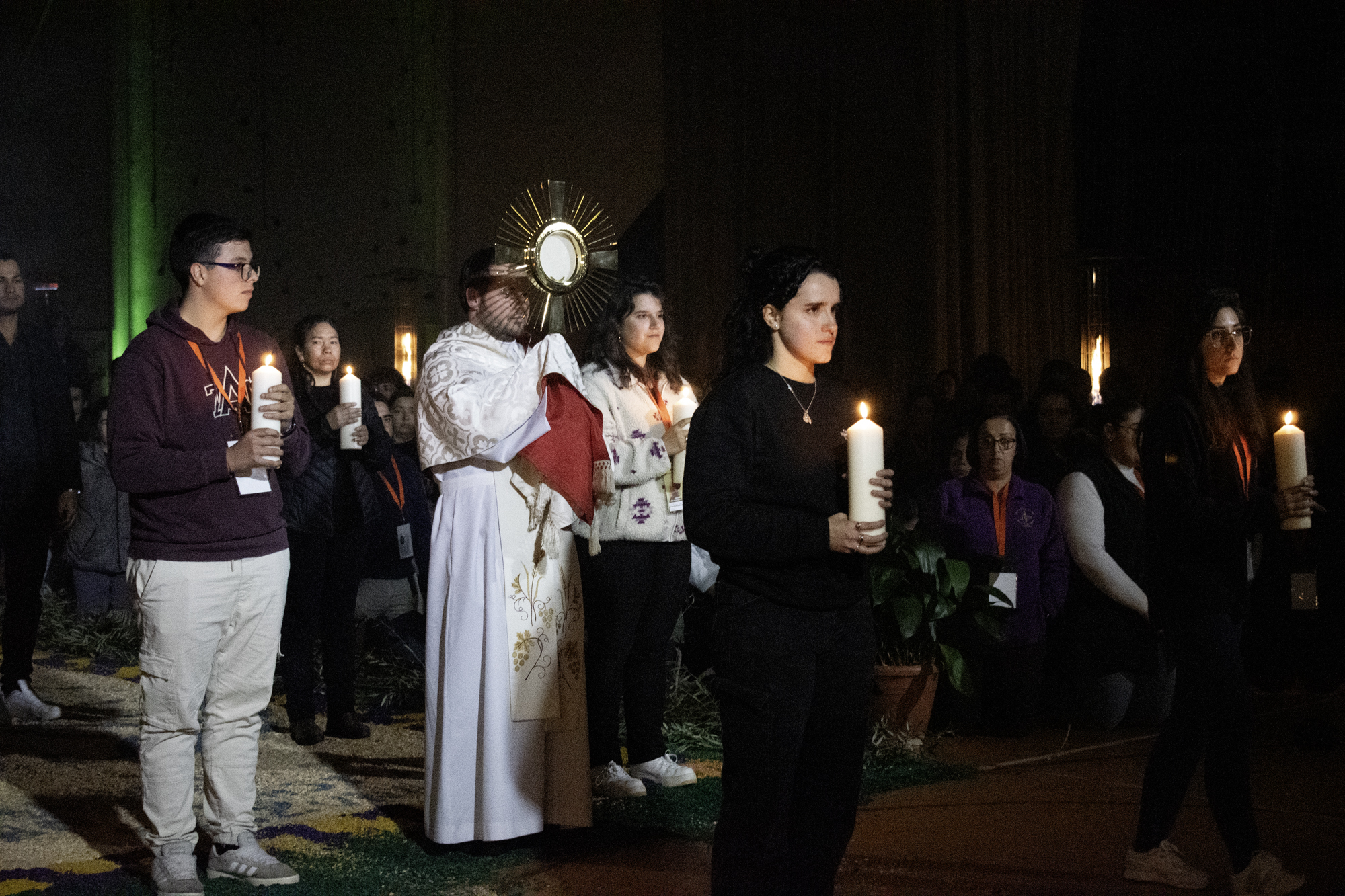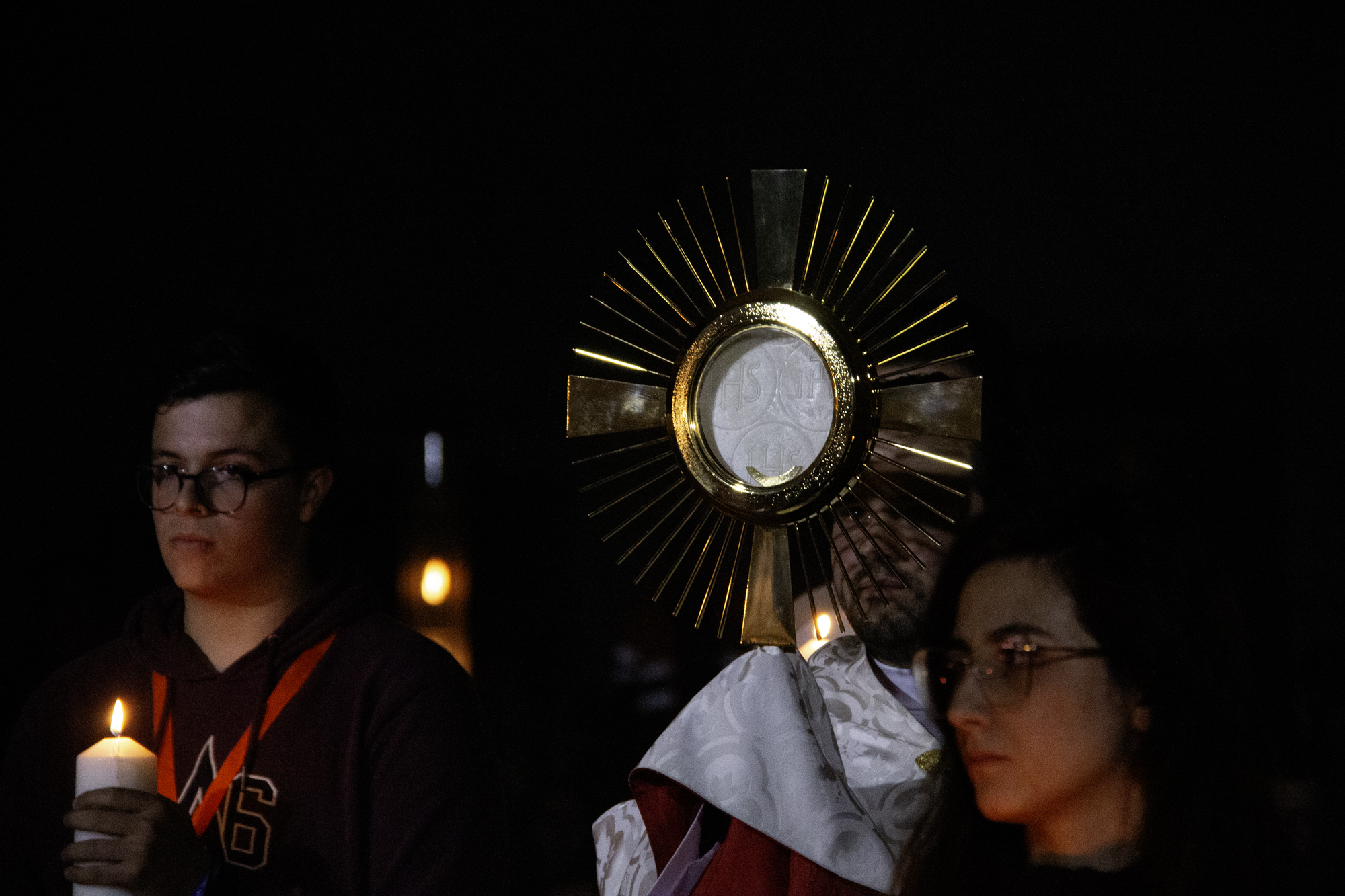 Tras la lectura de la Palabra, el obispo se dirigió a los más de 400 jóvenes con una invocación al Espíritu Santo para que «renueve la cara de mi vida ante el espejo de la Palabra» y sea «mi guía y mi aliento, mi fuego y mi viento, mi fuerza y mi luz».