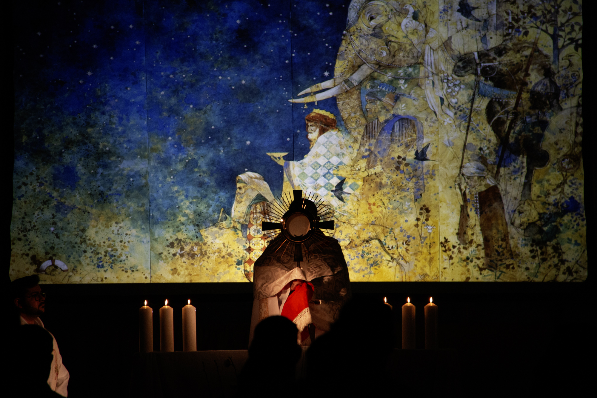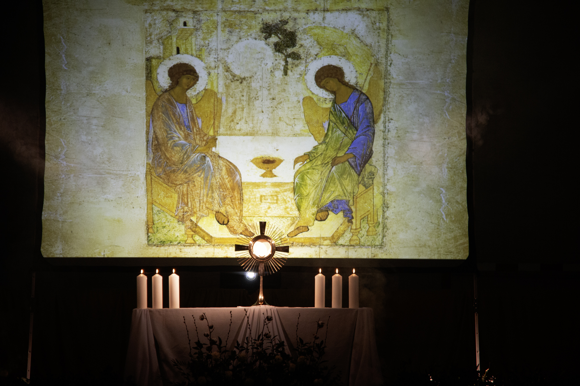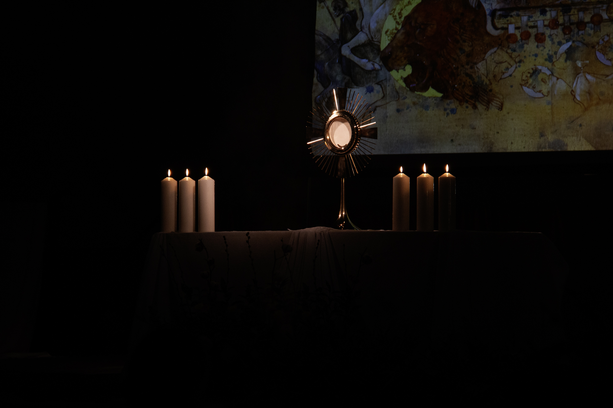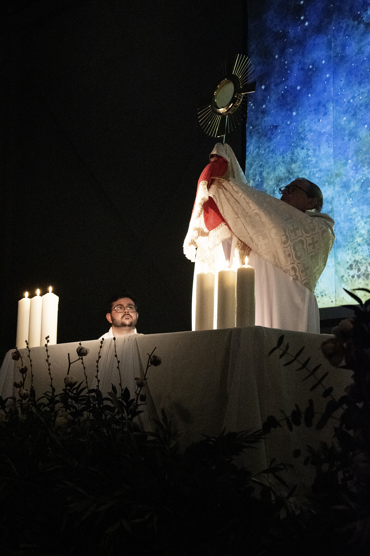 Después de las palabras del obispo, se expuso el Santísimo, con una oración en silencio acompañada en algunos momentos por los cantos de la coral.