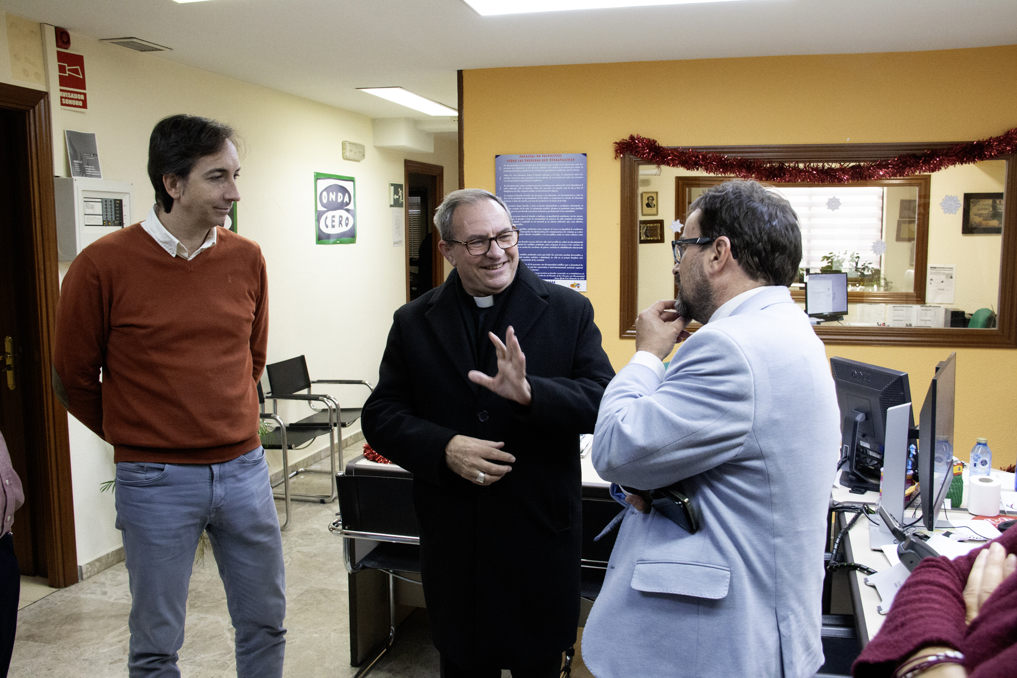El obispo se encontró con Javier Ruiz, director de la emisora, y saludó al periodista José Luis Juárez —responsable de la entrevista—, así como a los periodistas Consoli Romero y Francisco José Burgos. Tras el saludo y la bendición de las instalaciones, don Abilio participó en una entrevista en la que repasó sus primeras impresiones tras algo más de dos meses al frente de la diócesis.