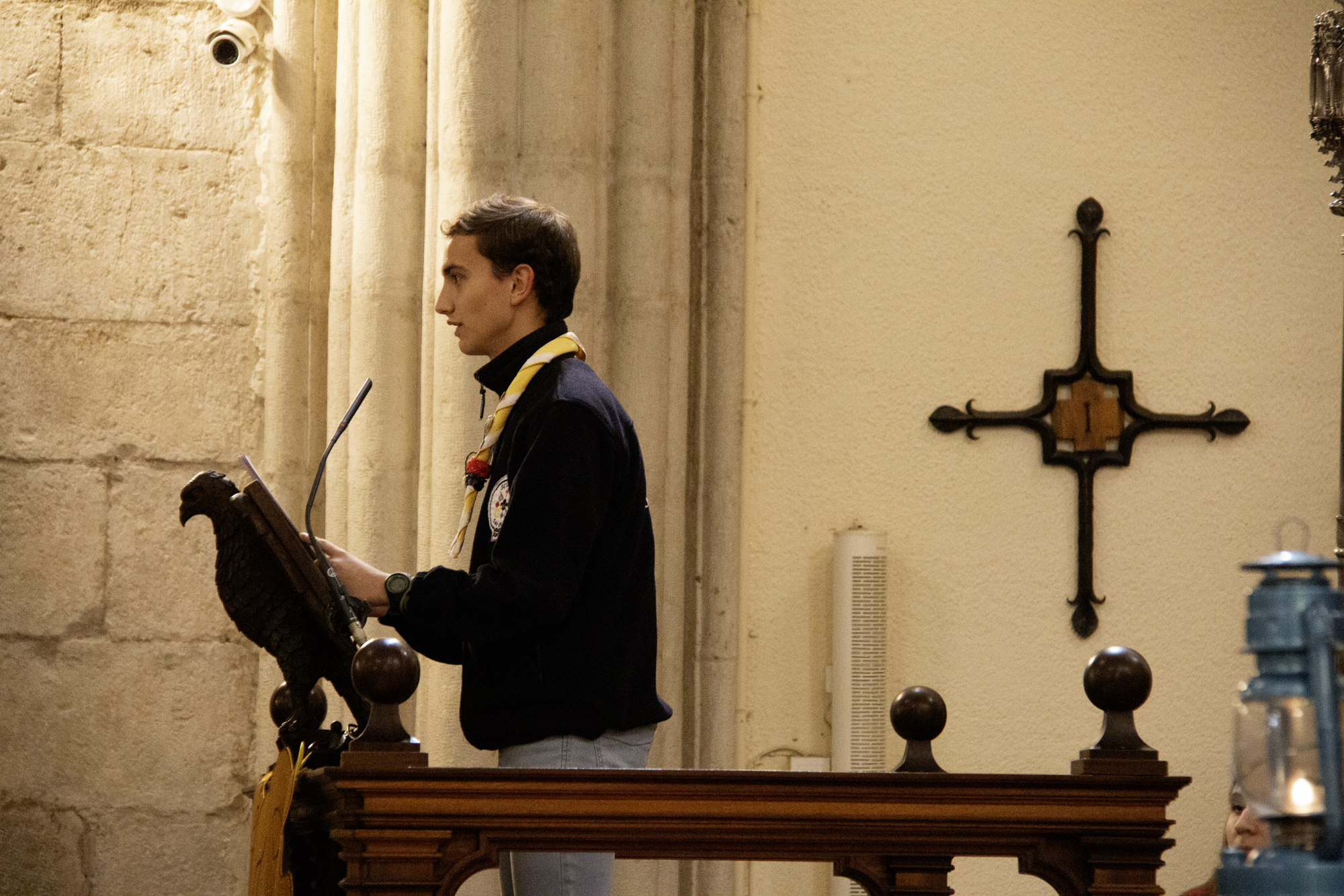 Tras la proclamación del Evangelio, el obispo explicó la tradición —de la que participan cada año más personas— de la entrega de la luz de la paz: «Ha habido una persona que ha ido a Belén, ha encendido allí la luz, la ha traído a Viena y, desde Viena, las diversas delegaciones de Europa han cogido la luz para traerla aquí a cada país. Hoy nos ha tocado en Ciudad Real».