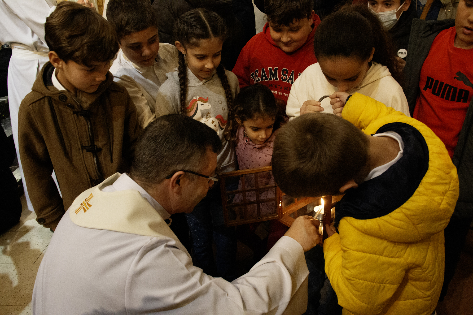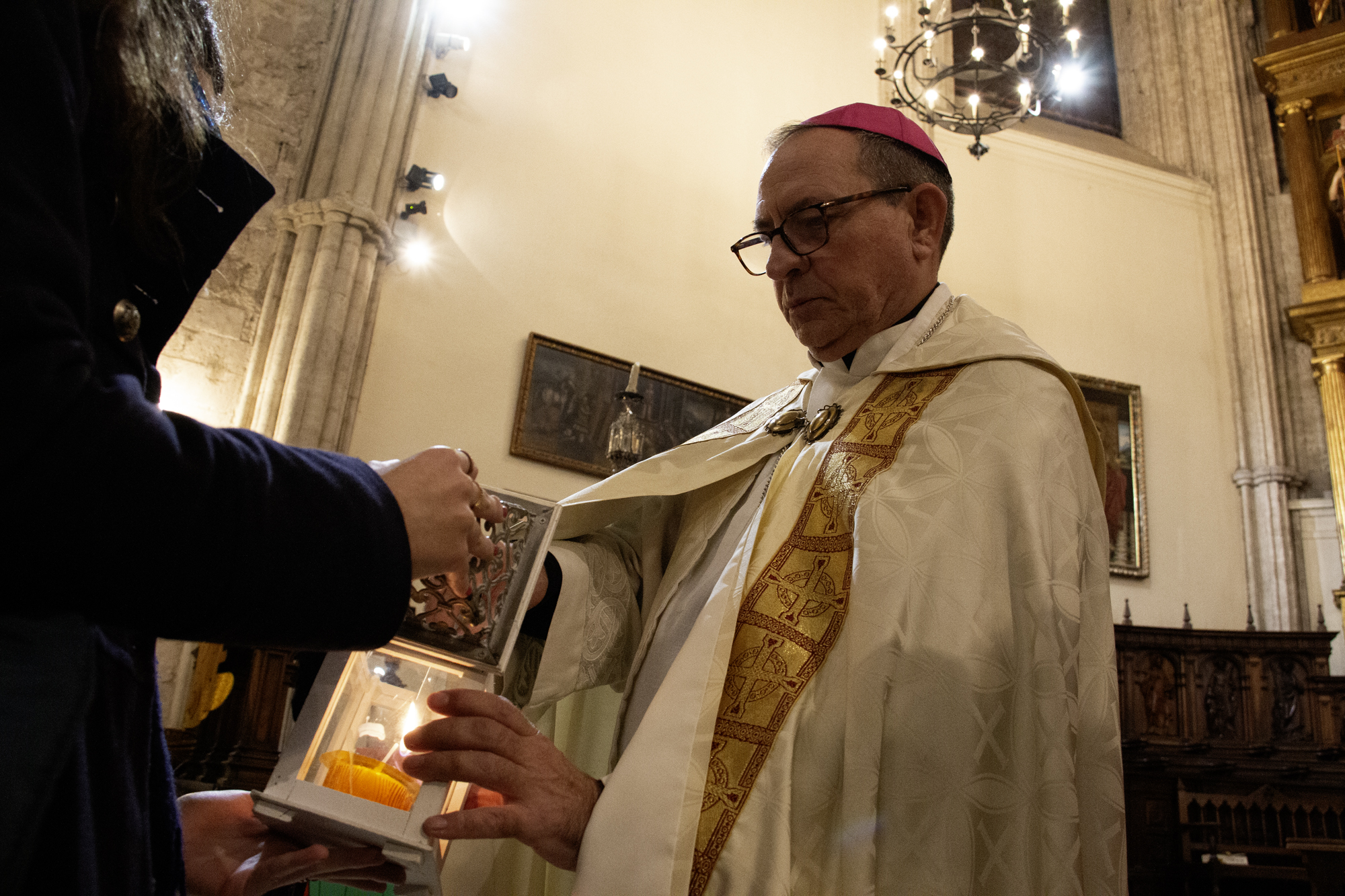 Además, el obispo se refirió la palabra «paz», recordando que la luz procede precisamente de una tierra marcada por el conflicto: «Precisamente allí donde nace la luz de la paz de Belén es donde más tenemos que pedir para que tengamos la paz». Amplió esta llamada al contexto europeo, señalando que «hay una guerra en Europa muy cerca de nuestras casas», en referencia al conflicto entre Rusia y Ucrania, e insistió en la responsabilidad de todos para construir la paz.
