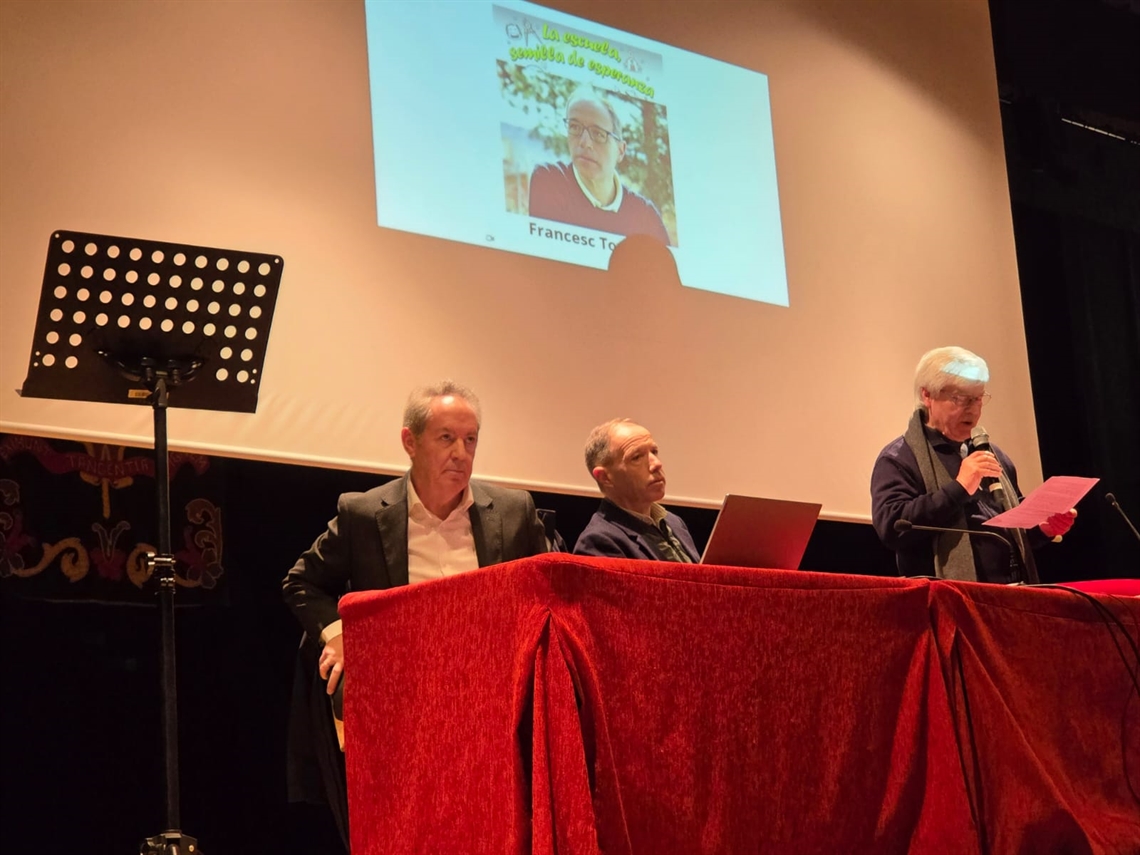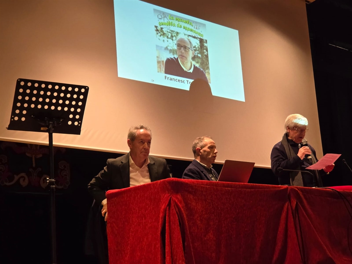El momento central y formativo de la jornada fue la ponencia del profesor y filósofo Francesc Torralba, que desarrolló una reflexión profunda sobre el papel de la escuela bajo el título La escuela: semilla de esperanza. Torralba situó su intervención en un contexto marcado por el desencanto social, la fragilidad emocional y la proliferación de discursos pesimistas sobre el futuro, especialmente en el ámbito educativo. En este escenario, subrayó que articular un discurso sobre la esperanza no es ingenuo ni evasivo, sino una tarea necesaria y con plena legitimidad intelectual.