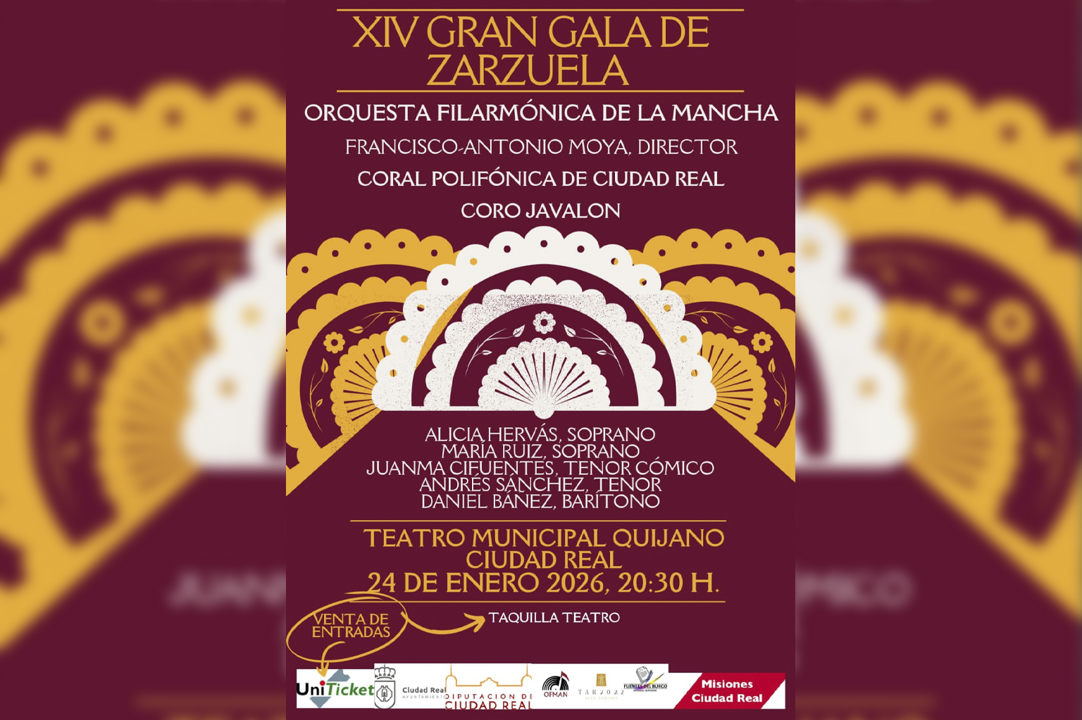 El teatro municipal Quijano de Ciudad Real acogerá, a las 20:30 h. del próximo 24 de enero, la XIV Gran Gala de la Zarzuela.