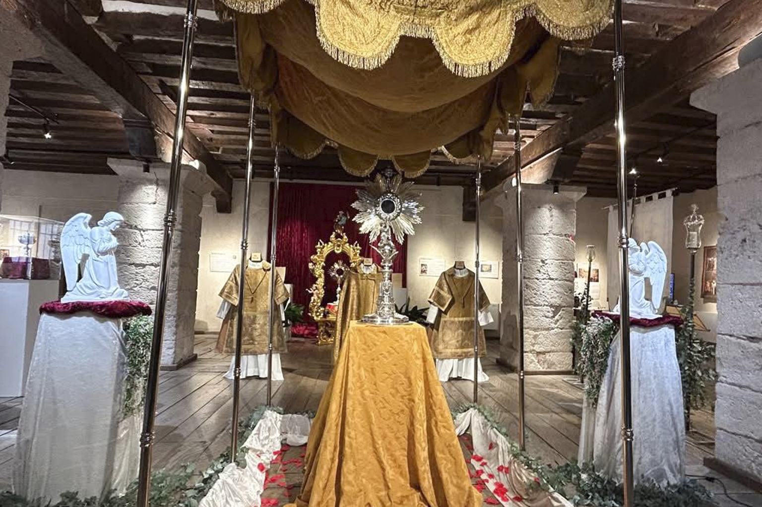 La exposición está dividida en 4 partes: «Tomad y comed», «Venid y adorad», «Es el Señor» y «Hemos venido a adorarlo» con el hilo conductor y espiritual de la presencia real de Cristo en la eucaristía. Además de los diferentes paneles explicativos, en la muestra se pueden ver elementos litúrgicos y de orfebrería, enseres de la cofradía, archivos históricos y una muestra fotográfica de la historia de la festividad del Corpus Christi.