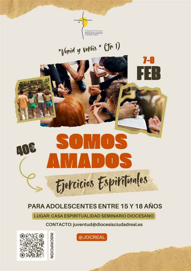 La Delegación de Pastoral Juvenil de la diócesis de Ciudad Real organiza unos Ejercicios Espirituales para adolescentes, que se celebrarán el fin de semana del 7 y 8 de febrero en el Seminario Diocesano de Ciudad Real. La propuesta está dirigida a jóvenes de 15 a 18 años (de 4.º de ESO a 2.º de Bachillerato).