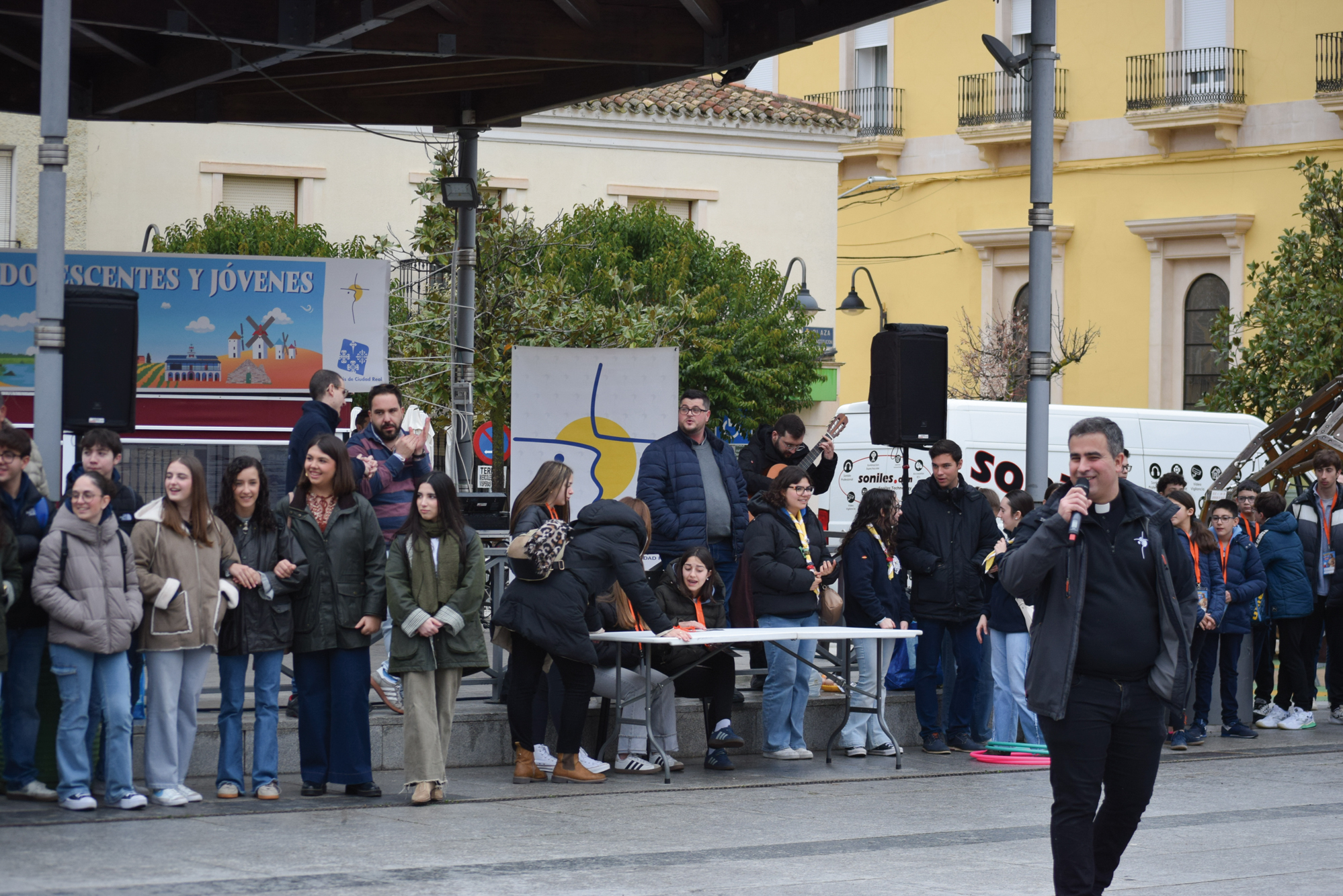 La jornada comenzó por la mañana en la Plaza de la Constitución de Socuéllamos, donde el equipo organizador dio la bienvenida a los participantes, junto con jóvenes de Bolaños que colaboraron en la animación del encuentro. En nombre de la Delegación de Pastoral de Juventud, el sacerdote Marcos Sevilla saludó a los grupos presentes, llegados desde distintas localidades de la diócesis, entre ellas Tomelloso, Miguelturra, Herencia, Bolaños, Abenójar, Porzuna, Ciudad Real, Argamasilla de Alba, Carrizosa y el pueblo anfitrión.