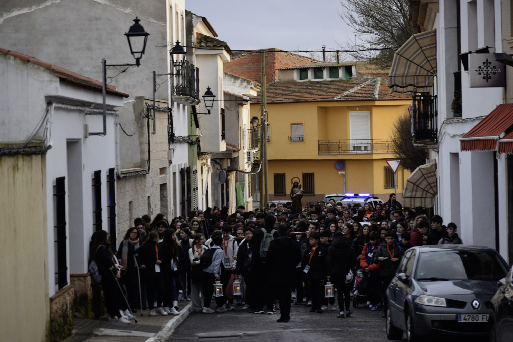 Desde la capilla, los participantes salieron en procesión por las calles de Socuéllamos, portando la cruz de los jóvenes —réplica de la cruz de las Jornadas Mundiales de la Juventud— y una imagen de san José, mientras cantaban y se dirigían hacia la parroquia para celebrar la eucaristía.