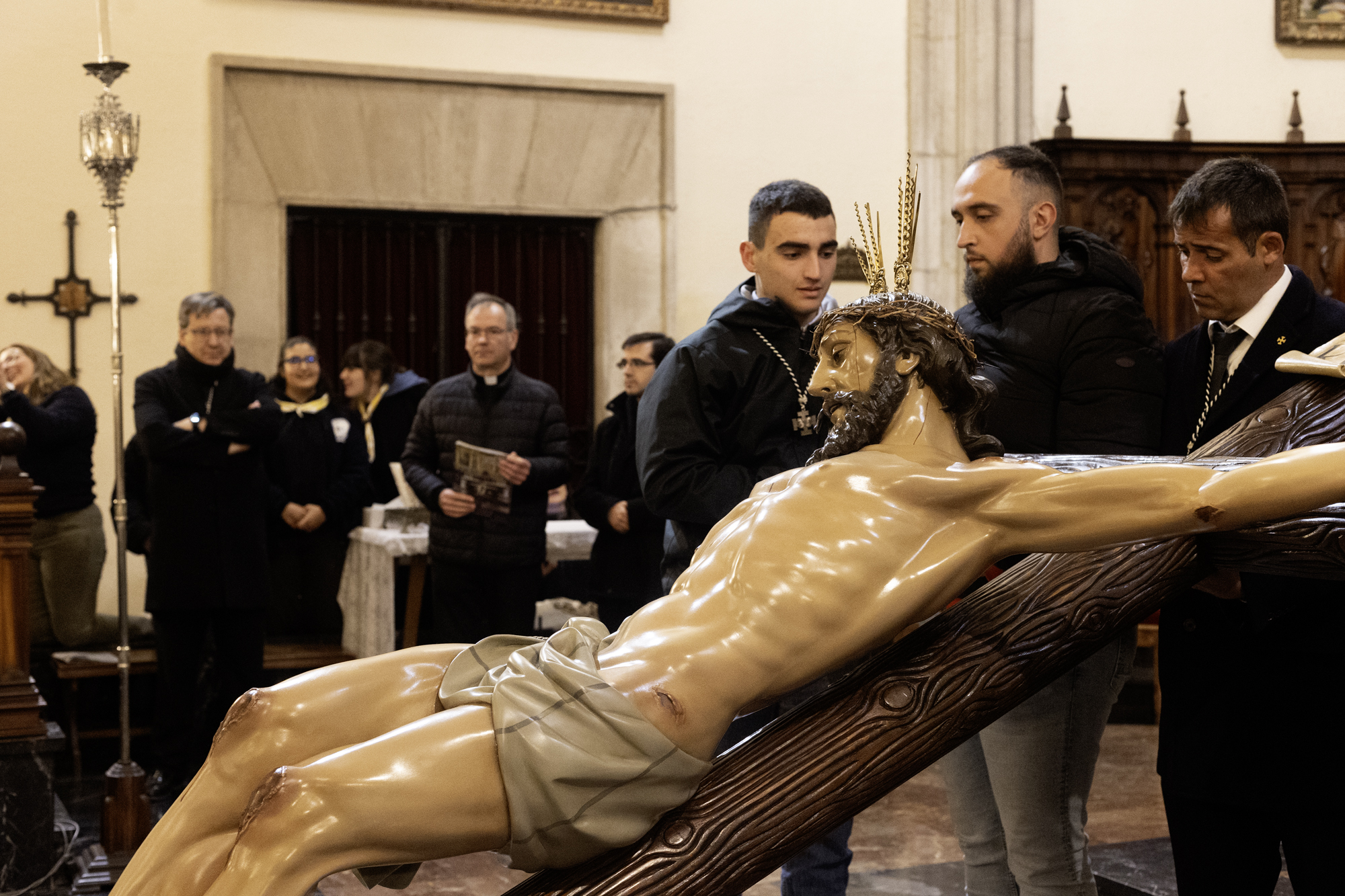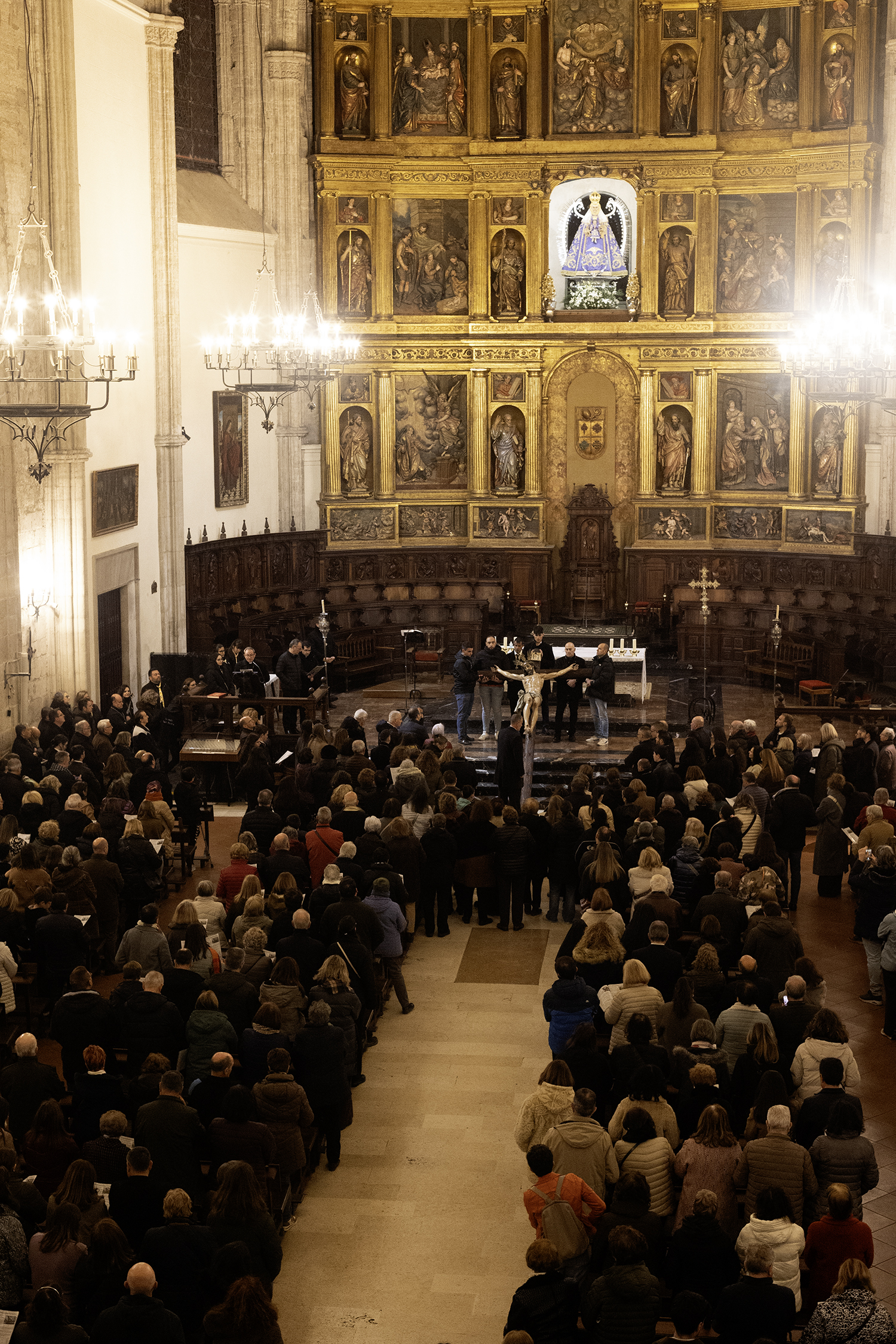 La última estación del viacrucis se rezó ya en el interior de la catedral. Fue el propio obispo quien dirigió esta estación final, antes de dirigirse a todos los presentes con unas palabras en las que invitó a contemplar con hondura el misterio pascual junto al Señor.