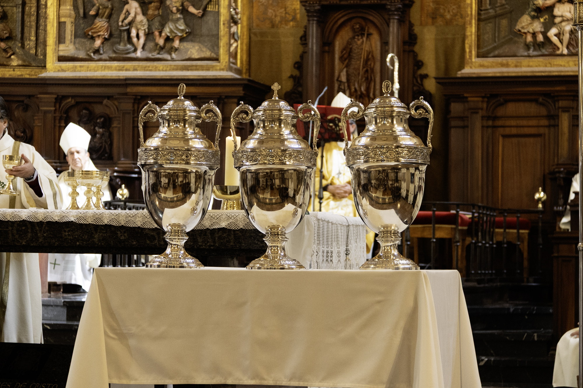 En esa línea, agradeció con sus palabras la presencia de tantos fieles en la catedral, subrayando que lo que en esta eucaristía se celebra alcanza a toda la diócesis. «Los óleos que bendecimos y el crisma que será consagrado están destinados a toda la diócesis, a los niños, a los jóvenes, a los adultos y a los ancianos […]. Va a ser toda la diócesis la que será tocada por esta gracia a través de los óleos».