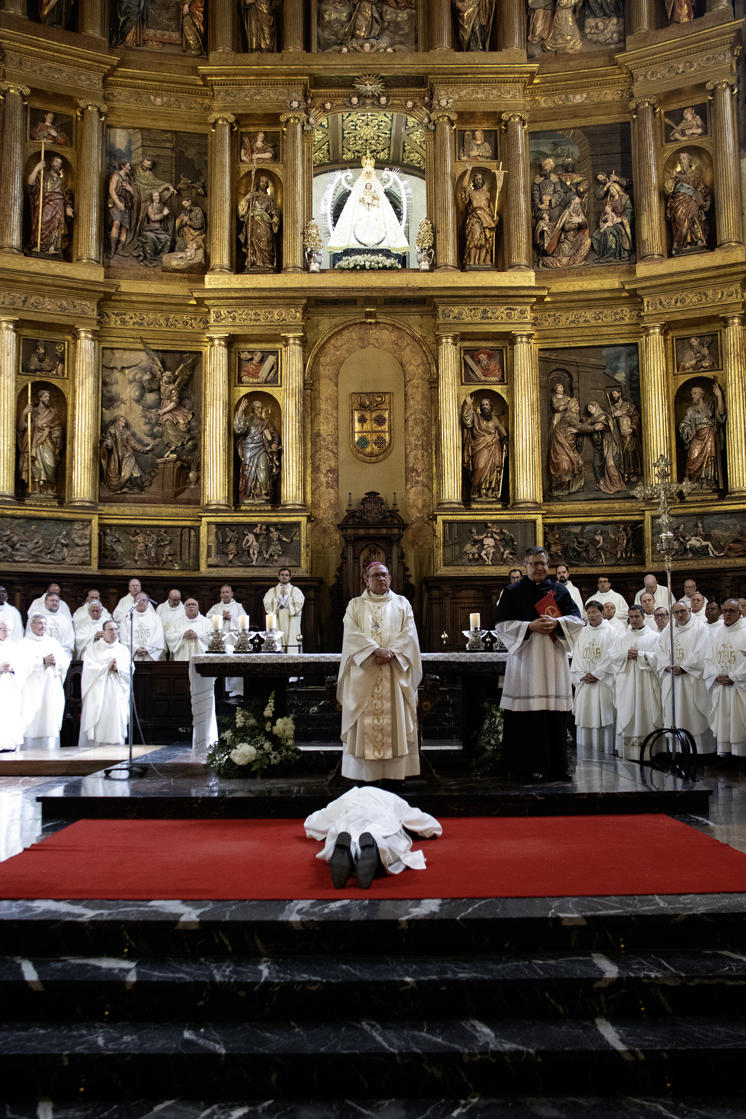 A partir de las lecturas proclamadas, el obispo fue desgranando el sentido del ministerio sacerdotal. Apoyándose en el texto del profeta Isaías, señaló que lo que se celebraba en la catedral era «más que un rito hermoso», advirtiendo que la liturgia no puede reducirse a una mera escenificación. «Hoy es algo mucho más profundo. Y es que el Espíritu Santo va a descender sobre ti y te va a configurar de una forma especial con Cristo cabeza, pastor, siervo y esposo de la Iglesia», dijo. Por eso, añadió, la vida del nuevo sacerdote «va a quedar marcada para siempre».
