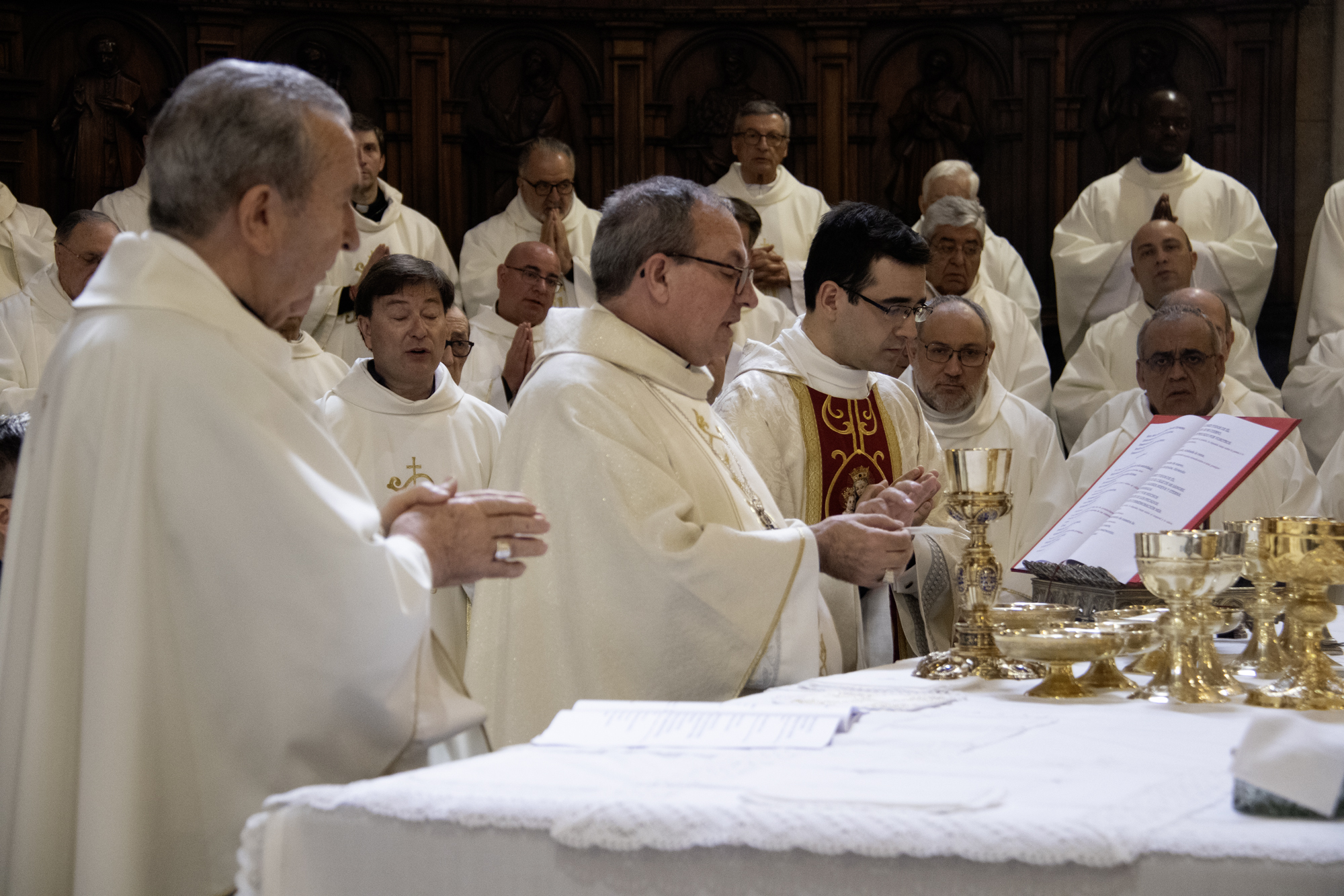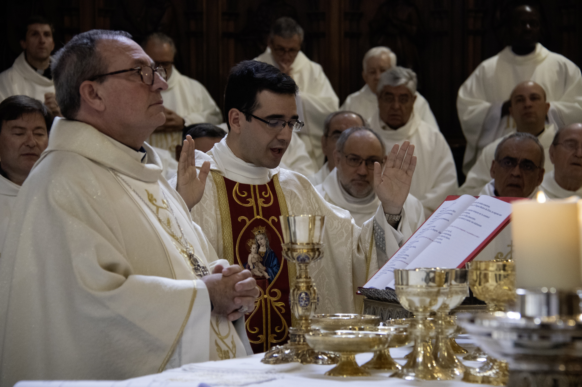 En la homilía, don Abilio se detuvo también en el estilo pastoral que debe caracterizar a todo sacerdote. Citando la primera carta de san Pedro, enumeró tres actitudes fundamentales para el ejercicio del ministerio. La primera, pastorear «no a la fuerza, sino de buena gana», porque «el ministerio no tiene que ser nunca una obligación que nos aplasta» y porque «la alegría y el gusto por servir, la alegría y el gusto por evangelizar es una primera manera de evangelizar». La segunda, vivir el sacerdocio «no por sórdida ganancia, sino con entrega generosa», recordando las palabras del evangelio: «Gratis lo recibisteis, dadlo gratis». Así presentó el sacerdocio como signo de gratuidad en medio de un mundo que mide con frecuencia a las personas por su utilidad.